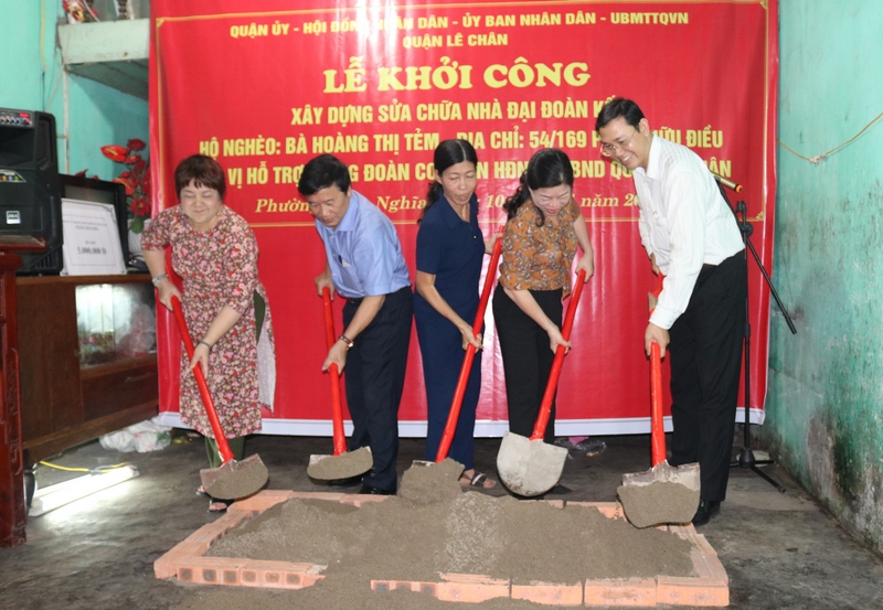 Thực hiện NQ 08 của BTV Quận ủy Lê Chân về thực hiện NQ05 và NQ 32 của HĐND thành phố; thực hiện chương trình giảm nghèo bền vững giai đoạn 2019 – 2020 của UBND quận, sáng 10-4, quận Lê Chân tổ chức khởi công sửa chữa nhà “Đại đoàn kết” cho 2 hộ nghèo trên địa bàn phường Nghĩa Xá và phường Niệm Nghĩa.