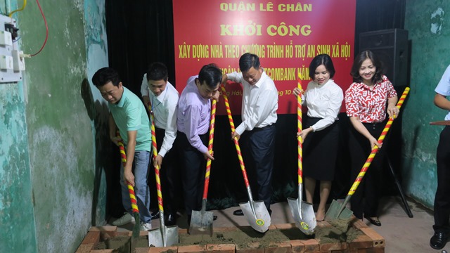Sáng 11/10, UBND quận Lê Chân khởi công xây mới nhà ở cho 2 hộ gia đình theo chương trình hỗ trợ an sinh xã hội của Ngân hàng Vietcombank năm 2019.