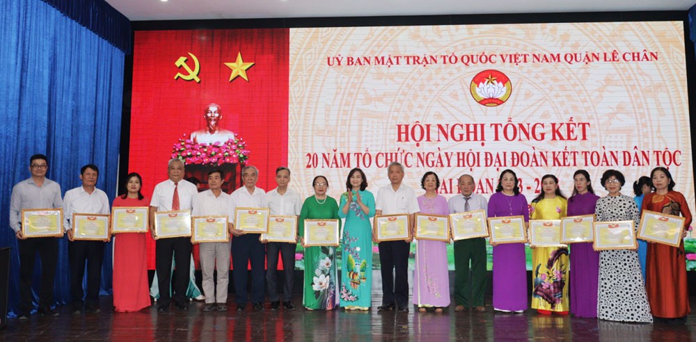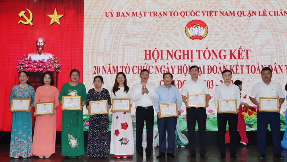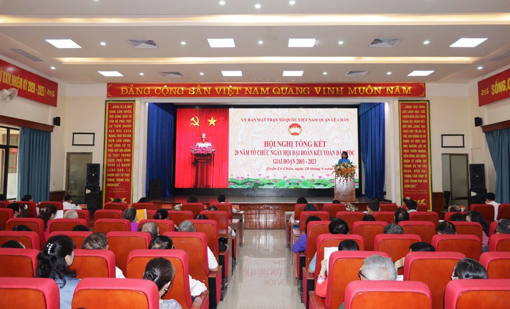 Chiều 20/4, Ủy ban MTTQ Việt Nam quận Lê Chân tổ chức Hội nghị tổng kết 20 năm tổ chức Ngày hội Đại đoàn kết toàn dân tộc (giai đoạn 2003-2023) trên địa bàn quận.