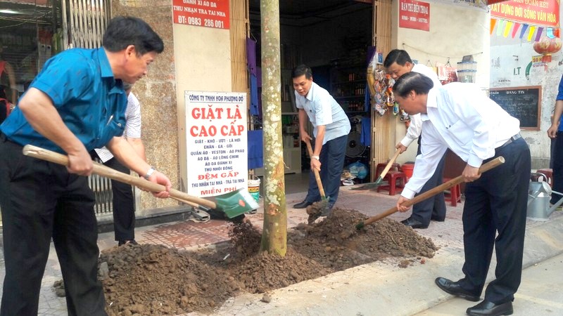 Ngay sau buổi lễ, các đại biểu đã tham gia trồng cây với nhân dân tại tuyến phố Lâm Tường, phường Hồ Nam và khu vực đường Tôn Đức Thắng, phường Lam Sơn, quận Lê Chân.