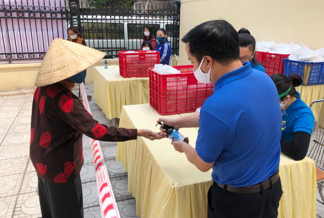 Theo quan sát, tại điểm phát suất ăn miễn, phí, người dân được cán bộ hướng dẫn chú ý về công tác phòng, chống dịch bệnh COVID-19 như đeo khẩu trang, không tụ tập đông người, đứng xếp hàng cách nhau 2m, khử trùng bằng nước sát khuẩn trước khi nhận cơm. Tất cả những người dân đến nhận suất ăn miễn phí đều được ghi lại thông tin.