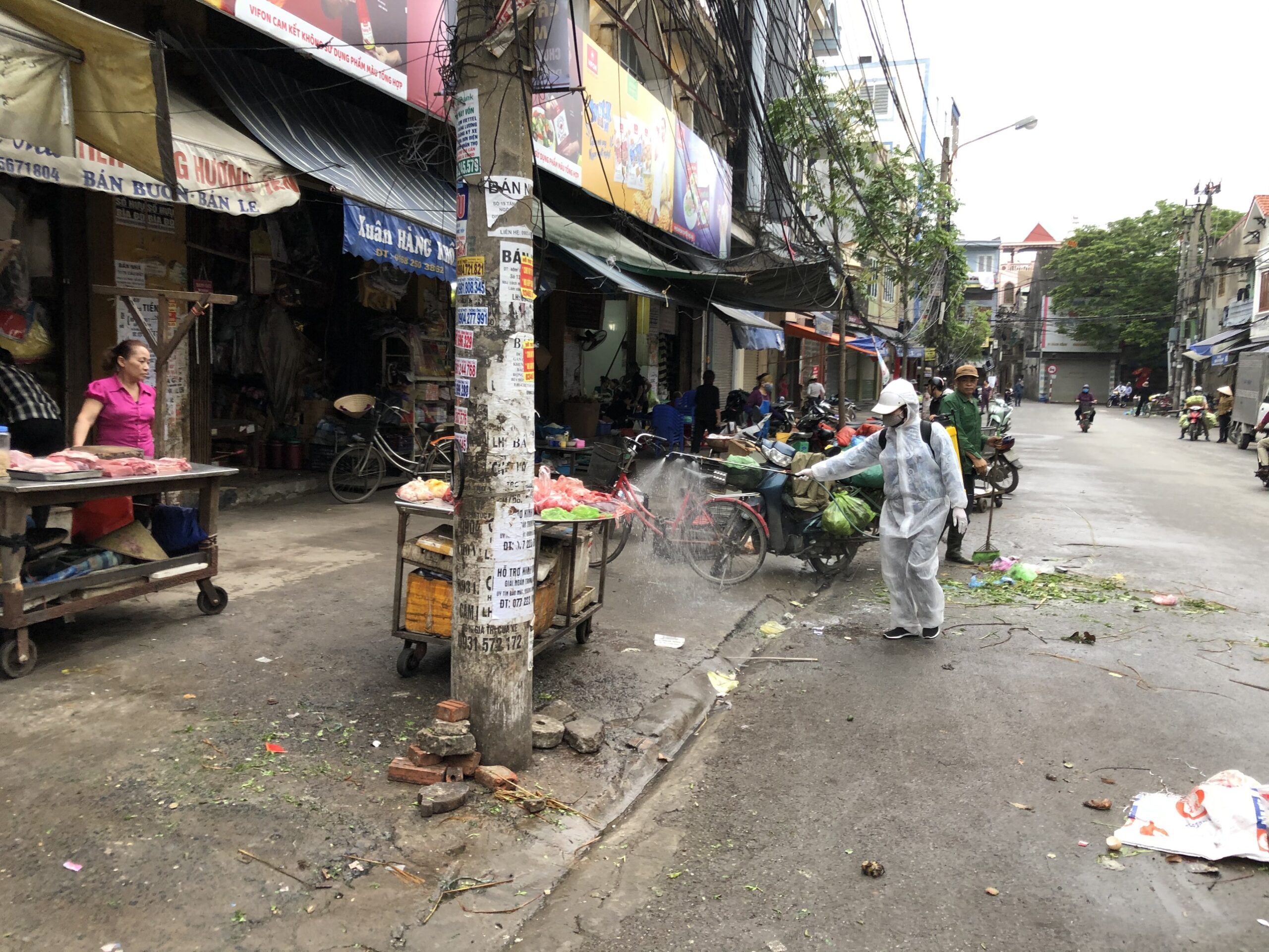 Theo ông Ngô Đức Tiệp, Trưởng phòng Y tế quận, trong buổi sáng sẽ phun thuốc khử trùng tại 4 chợ lớn trên địa bàn là: chợ Con, chợ Cột Đèn, chợ Đôn Niệm, chợ An Dương với tổng số lượng thuốc phun là 120kg Cloramin B và sẽ phun đều trên phạm vi rộng. Thuốc khử trùng được phun hoàn toàn không ảnh hưởng đến sức khỏe người dân. Quận đã tiến hành phun tại các chợ nhiều lần và sẽ tiếp tục phun vào tuần sau.
