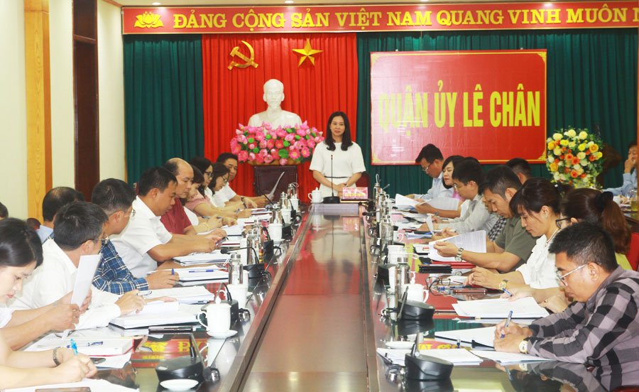 Chiều 2/8, Thường trực Quận ủy Lê Chân triệu tập Hội nghị Ban Thường vụ Quận ủy đánh giá kết quả thực hiện nhiệm vụ tháng 7; triển khai nhiệm vụ trọng tâm tháng 8 năm 2022. Đồng chí Trần Thu Hương, Ủy viên Thành ủy, Bí thư Quận ủy chủ trì Hội nghị.