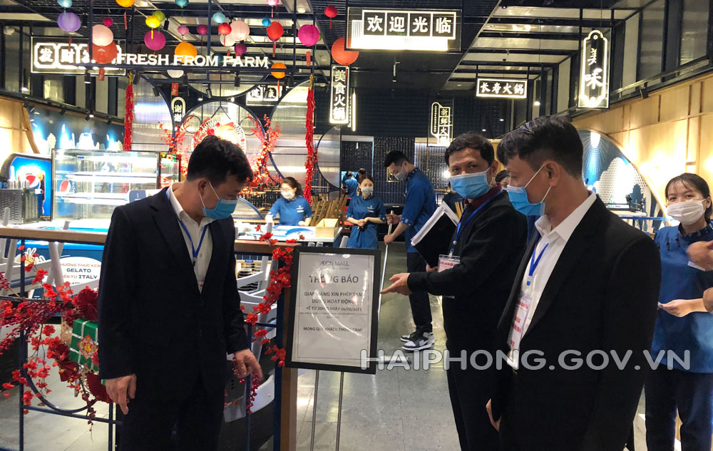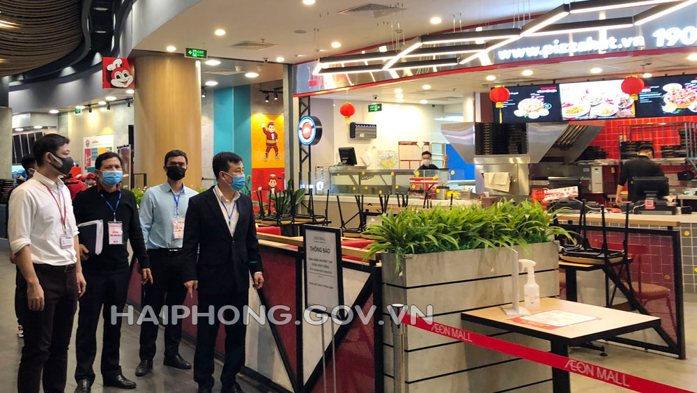 Đoàn kiểm tra đề nghị Trung tâm thương mại AeonMall Hải Phòng Lê Chân tiếp tục thực hiện nghiêm công tác phòng chống dịch COVID-19, đôn đốc nhắc nhở cho dừng các gian hàng không cần thiết, chỉ mở bán các gian hàng thiết yếu và phải yêu cầu nhân viên, khách hàng đeo khẩu trang, giữ khoảng cách khi vào mua hàng, thường xuyên rửa tay sát khuẩn; tăng cường công tác tuyên truyền đến các nhân viên về các biện pháp phòng, chống dịch, tuyệt đối không chủ quan, lơ là, mất cảnh giác và phải tự bảo vệ bản thân trước nguy cơ dịch bệnh; thường xuyên cập nhật các văn bản chỉ đạo mới của thành phố, quận về công tác phòng, chống dịch.