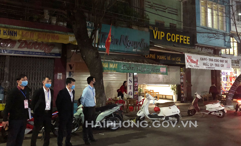 Cũng trong tối 16/2, Đoàn đã đi kiểm tra, nhắc nhở hoạt động tại các quán ăn, cà phê, giải khát trên một số tuyến đường như: Hoàng Minh Thảo, Nguyễn Công Hòa, Trần Nguyên Hãn, Tô Hiệu, Hàng Kênh. Qua kiểm tra, hầu hết các cơ sở kinh doanh đã chấp hành nghiêm thông báo của UBND thành phố, tuy nhiên vẫn còn một số cơ sở kinh doanh đang hoạt động, Đoàn kiểm tra đã nhắc nhở, yêu cầu tạm dừng các hoạt động kinh doanh từ 20h00 ngày 16/2/2021 theo đúng chỉ đạo của UBND thành phố và yêu cầu các cơ sở kinh doanh phải dán thông báo tạm dừng hoạt động theo đúng quy định. Đoàn kiểm tra cũng chia sẻ với những khó khăn của các cơ sở kinh doanh, tuy nhiên vì diễn biến phức tạp của dịch bệnh, Đoàn kiểm tra đề nghị các cơ sở kinh doanh cùng chung tay với thành phố để phòng, chống đẩy lùi dịch bệnh COVID-19.