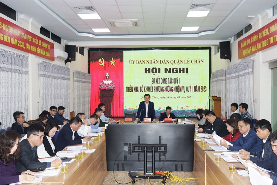 Sáng 30/3, UBND quận Lê Chân tổ chức Hội nghị sơ kết công tác Quý I/2023; triển khai bổ khuyết phương hướng, nhiệm vụ Quý II/2023. Đồng chí Nguyễn Văn Phiệt, Chủ tịch UBND quận chủ trì Hội nghị.