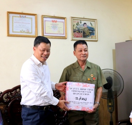 Chủ tịch UBND quận Lê Chân Phạm Tiến Du thăm, tặng quà các gia đình chính sách tại phường An Dương và Lam Sơn