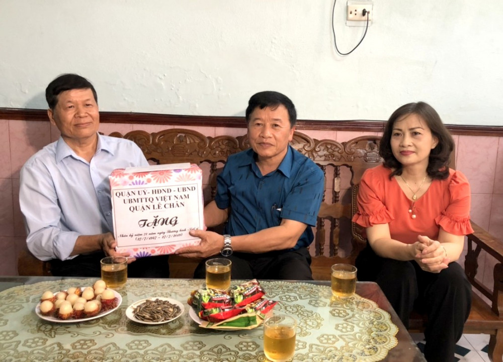 Nhân kỷ niệm 72 năm ngày thương binh liệt sĩ, sáng 15-7, đồng chí Lê Trung Kiên – Thành ủy viên, Bí thư quận ủy Lê Chân đã đến thăm, tặng quà các gia đình chính sách, người có công với cách mạng tiêu biểu trên địa bàn các phường Hàng Kênh và Đông Hải.