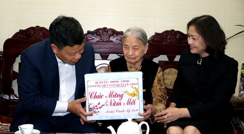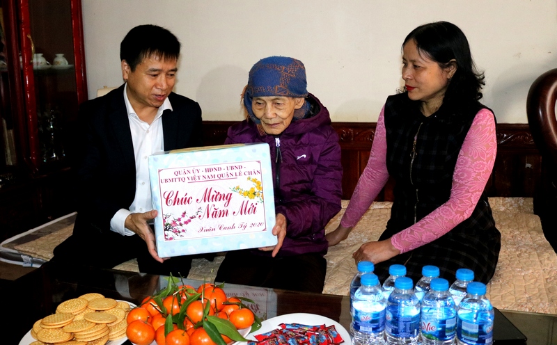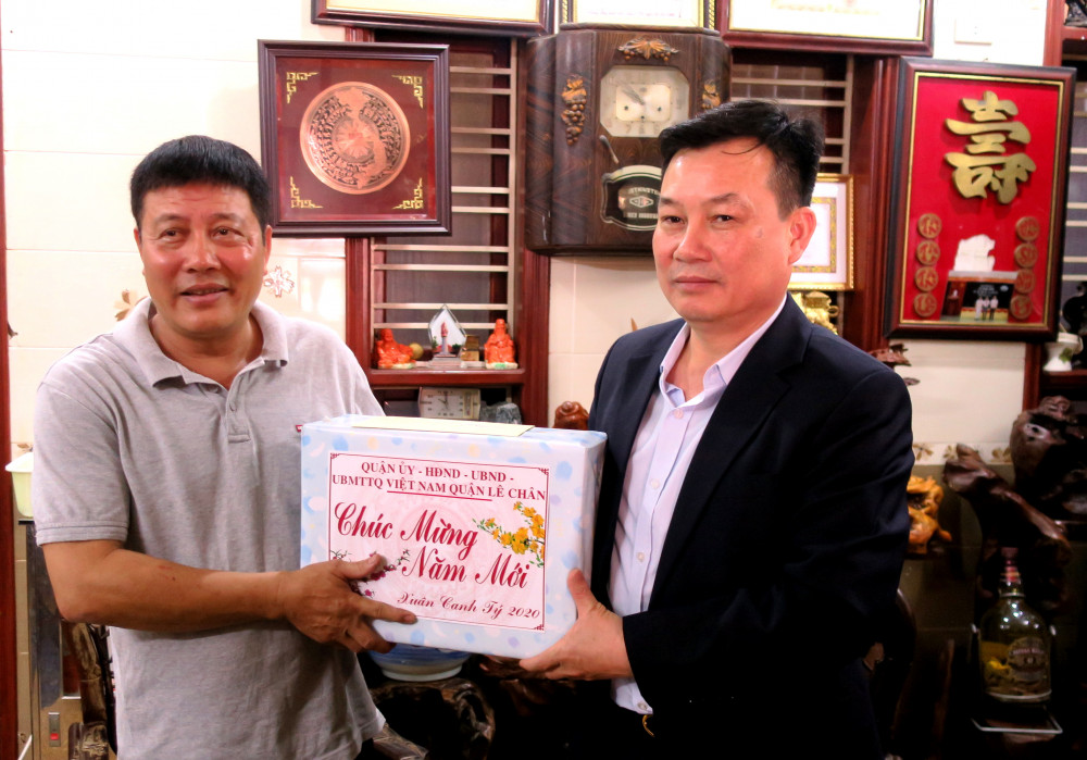 Sáng cùng ngày, các đồng chí Phạm Văn Tân – Phó bí thư thường trực quận ủy; Nguyễn Văn Phiệt – Chủ tịch UBND quận Lê Chân và đoàn công tác đã đến thăm, tặng quà chúc tết 12 gia đình người có công tiêu biểu, người cao tuổi trên địa bàn các phường Đông Hải, Hàng Kênh và Dư Hàng Kênh.