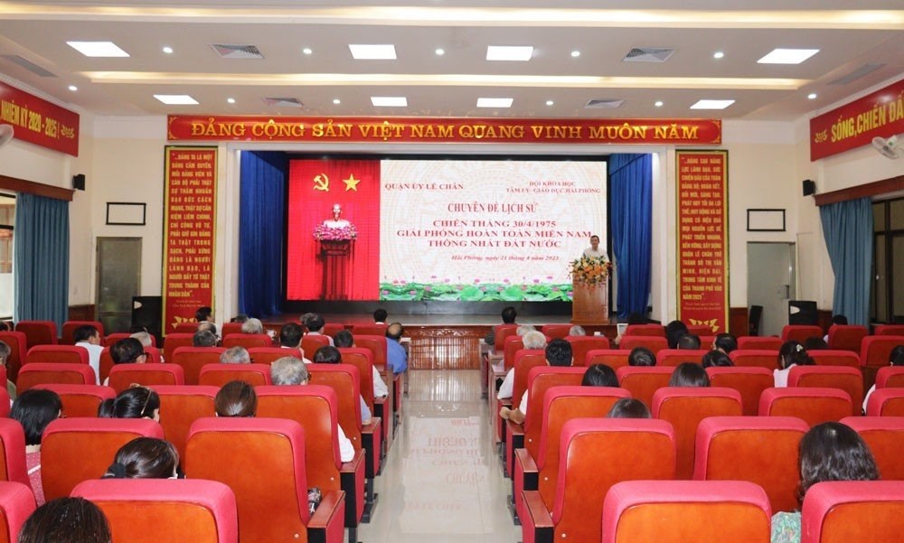 Tại Hội nghị, các đại biểu được nghe báo cáo viên Hội Khoa học Tâm lý Giáo dục Hải Phòng thông tin chuyên đề lịch sử chiến thắng 30/4/1975. Trong đó nhấn mạnh, đại thắng mùa xuân năm 1975 đã chứng minh trí tuệ và tài thao lược của Đảng ta trong lãnh đạo và chỉ đạo chiến tranh cách mạng, cũng như chứng minh tinh thần quật khởi của người dân Việt Nam trong đấu tranh chống ngoại xâm. Chiến thắng đã chấm dứt ách thống trị của chủ nghĩa đế quốc và chế độ phong kiến ở nước ta, hoàn thành cách mạng dân tộc dân chủ nhân dân, thống nhất đất nước, đồng thời mở ra một kỷ nguyên mới của dân tộc, cả nước cùng tiến lên CNXH. Thắng lợi này đã đi vào lịch sử nước ta và của thế giới, như một trang sử chói lọi ở những năm 70 của thế kỷ XX, mang tầm quốc tế, tầm thời đại sâu sắc…