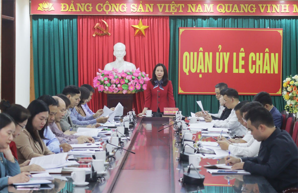 Chiều 30/11, Thường trực Quận ủy Lê Chân triệu tập Hội nghị Ban Thường vụ Quận ủy đánh giá việc thực hiện nhiệm vụ tháng 11; triển khai nhiệm vụ trọng tâm tháng 12/2023. Đồng chí Trần Thu Hương, Ủy viên Thành ủy, Bí thư Quận ủy chủ trì Hội nghị.
