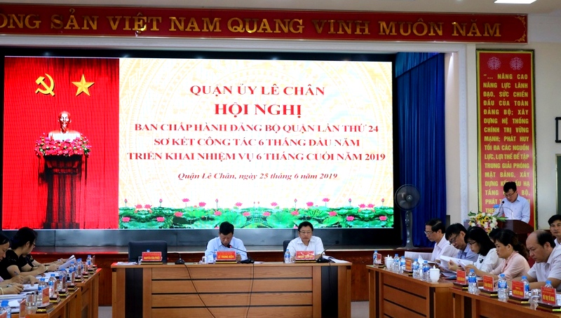 Tiếp tục phát huy các kết quả đạt được, 6 tháng cuối năm 2019, quận ủy Lê Chân đề ra một số nhiệm vụ trọng tâm, trong đó tiếp tục thực hiện hiệu quả chủ đề năm của thành phố và quận; hoàn thành và hoàn thành vượt mức các chỉ tiêu KT – XH năm 2019; tập trung thực hiện công tác GPMB các dự án trọng điểm như: Đường Hồ Sen – Cầu Rào 2, Khu tái định cư 4,3 ha, Khu đất BT Hoàng Huy Commerce…, tiếp tục thực hiện hiệu quả NQ 05 HĐND TP, chăm lo cho người có công.