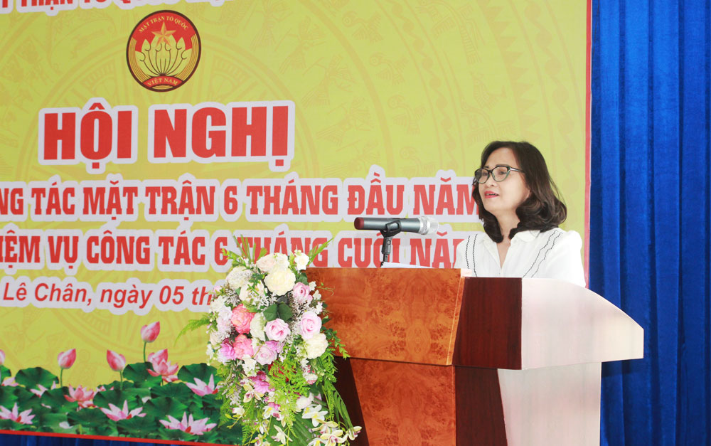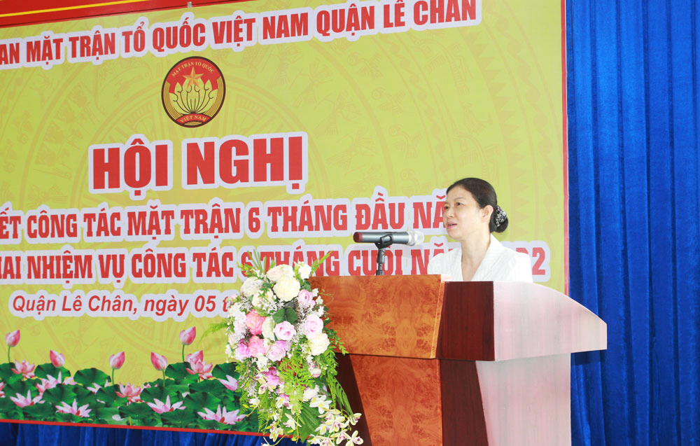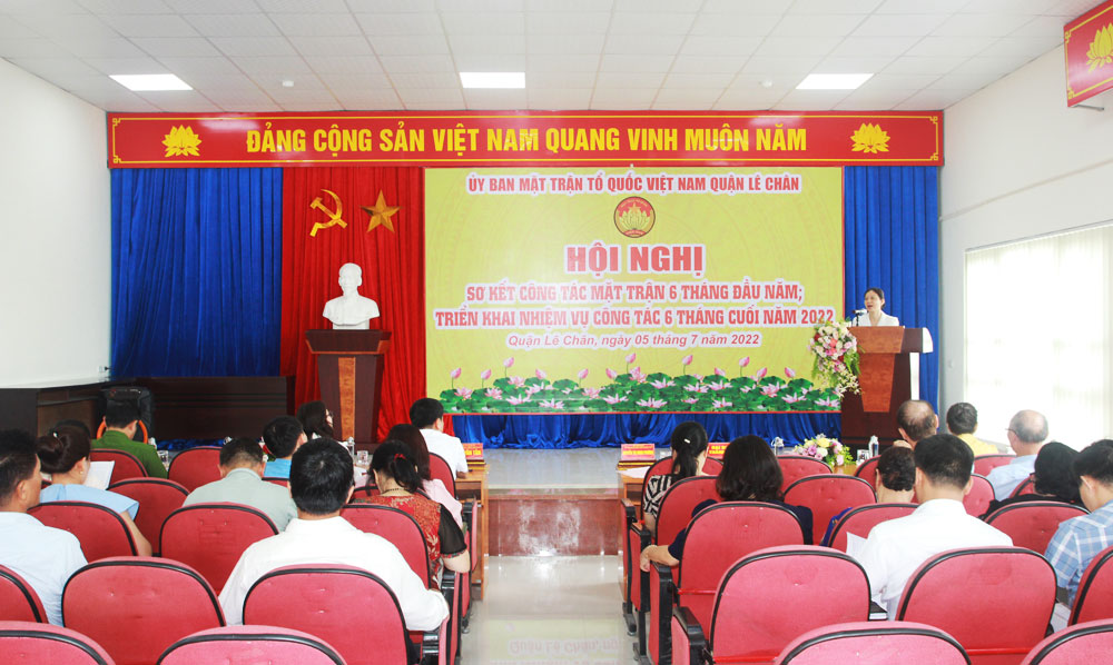 Sáng 5/7, Ủy ban MTTQ Việt Nam quận Lê Chân tổ chức Hội nghị sơ kết công tác Mặt trận 6 tháng đầu năm; triển khai nhiệm vụ 6 tháng cuối năm 2022. Tới dự có đồng chí Nguyễn Thị Minh Phương, Phó Chủ tịch Thường trực Ủy ban MTTQ Việt Nam thành phố.
