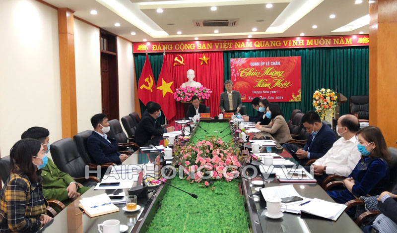 Phát biểu chỉ đạo Hội nghị, đồng chí Lê Trung Kiên, Trưởng Ban Quản lý Khu Kinh tế Hải Phòng đánh giá quận Lê Chân đã thực hiện nhiều biện pháp đồng bộ, hiệu quả trong công tác phòng, chống dịch COVID-19; liên tục cập nhật các thông tin, diễn biến dịch bệnh để thông tin kịp thời, chính xác, tuyên truyền, tránh hoang mang trong cộng đồng; tăng cường thông tin tuyên truyền vận động người dân thực hiện nghiêm túc các quy định về phòng, chống dịch.