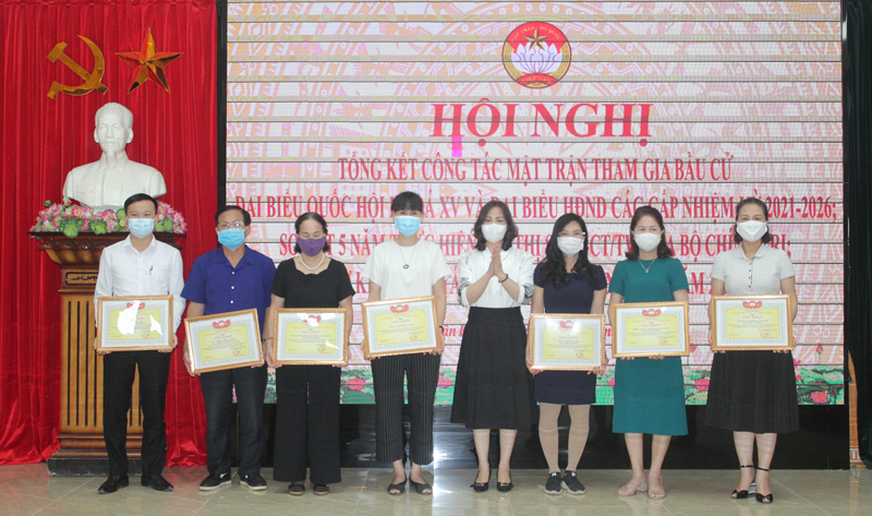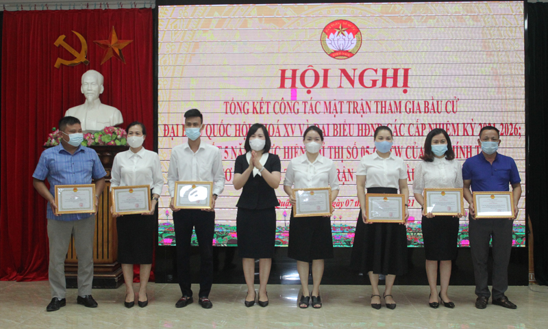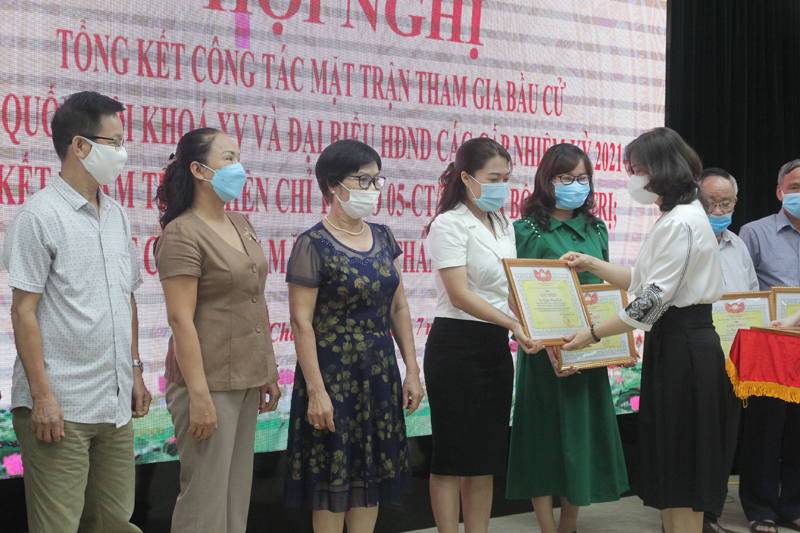 Tại Hội nghị, Chủ tịch UBND quận đã tặng Giấy khen cho 4 tập thể, 3 cá nhân; Ủy ban MTTQ Việt Nam quận tặng Giấy khen cho 3 tập thể, 4 cá nhân đã có thành tích xuất sắc trong công tác Mặt trận tham gia cuộc bầu cử đại biểu Quốc hội khóa XV và đại biểu HĐND các cấp nhiệm kỳ 2021-2026.