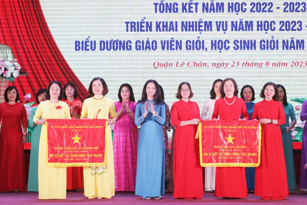 Nhân dịp này, Chủ tịch UBND thành phố đã tặng Cờ thi đua xuất sắc cho 2 tập thể, tặng Bằng khen cho 14 tập thể đạt danh hiệu “Tập thể lao động xuất sắc”; tặng Bằng khen cho 6 tập thể và 74 cá nhân hoàn thành xuất sắc nhiệm vụ từ năm học 2021-2022 đến năm học 2022-2023. Chủ tịch UBND quận tặng Giấy khen cho 47 tập thể và 80 cá nhân đã hoàn thành xuất sắc nhiệm vụ năm học 2022-2023.