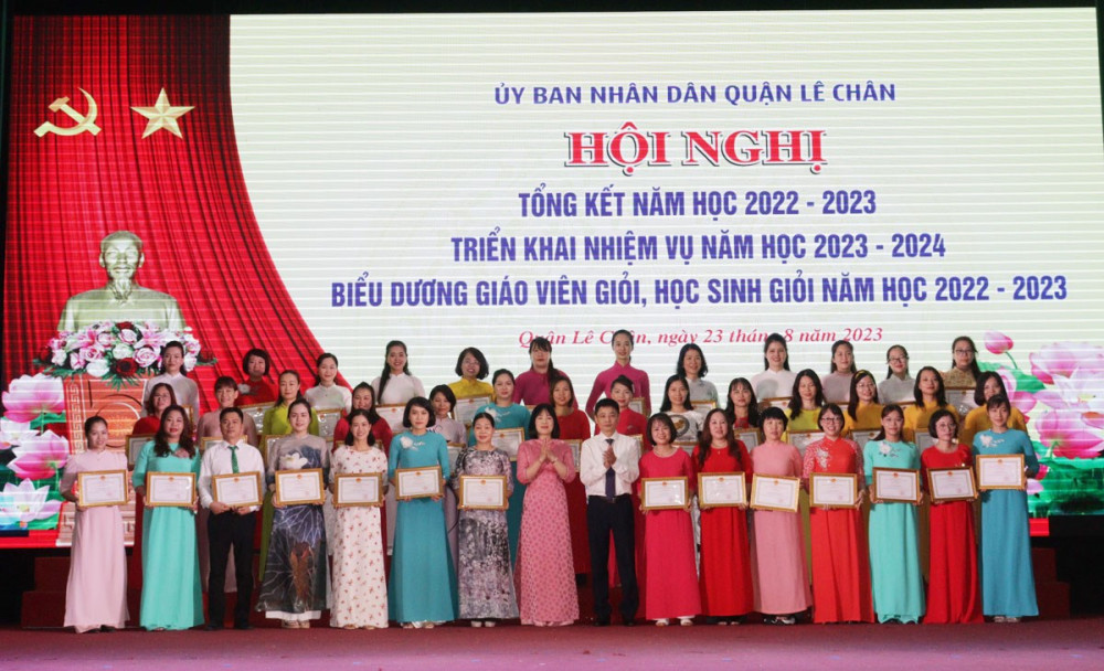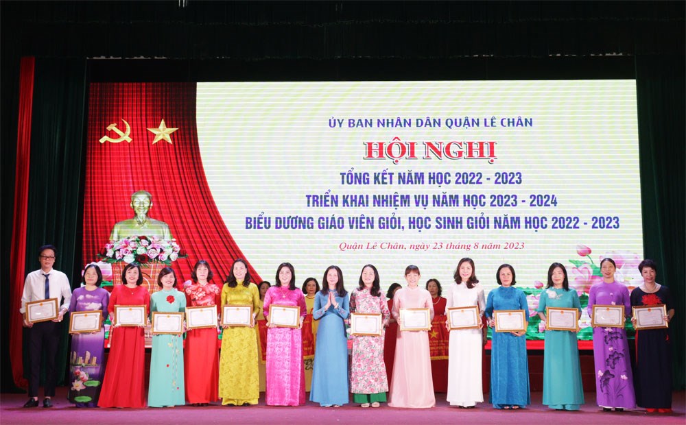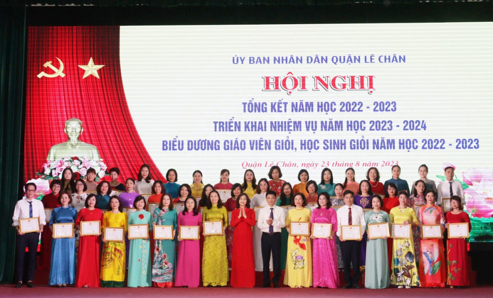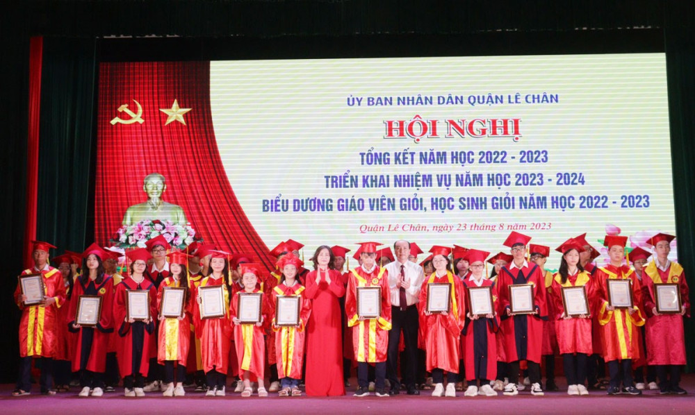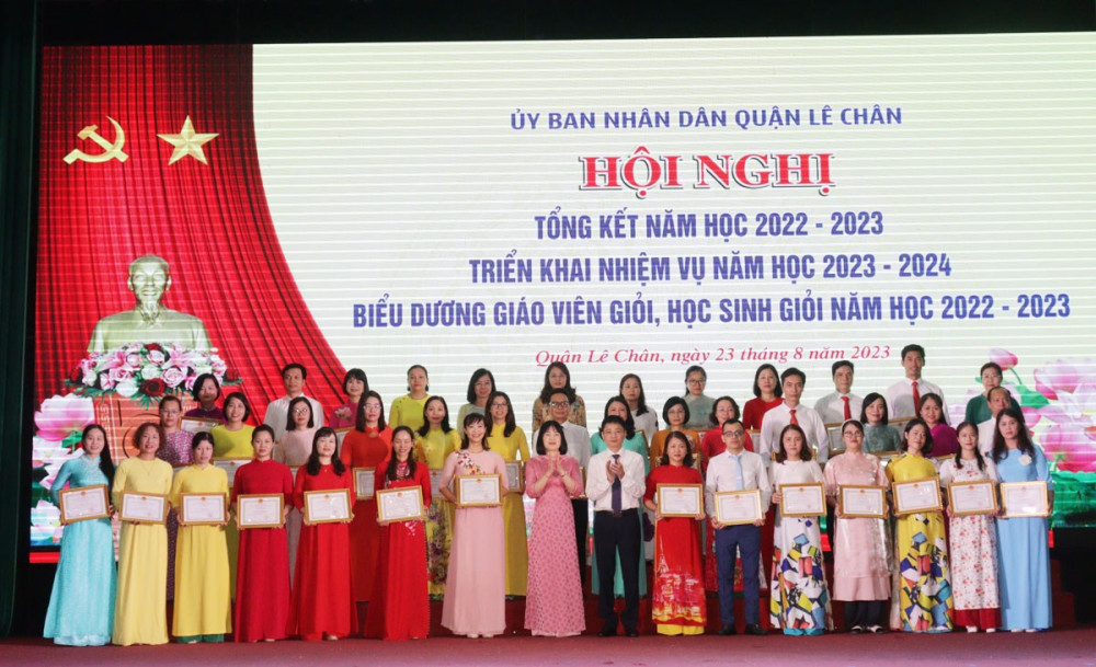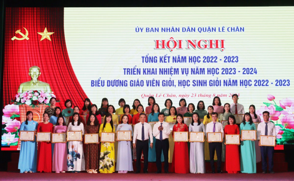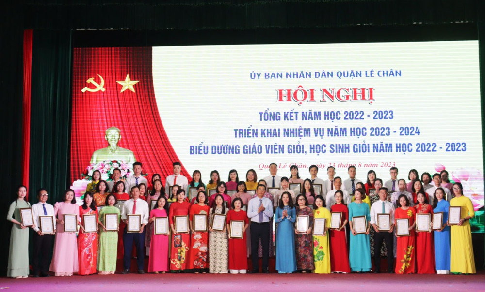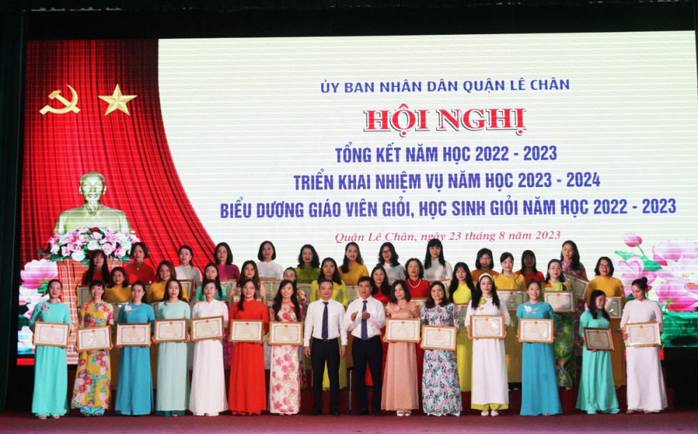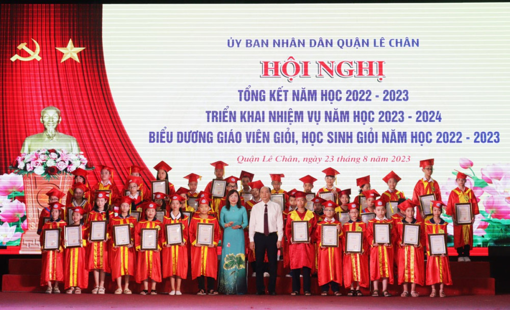 Sáng 23/8, UBND quận Lê Chân tổ chức Hội nghị tổng kết năm học 2022-2023; triển khai nhiệm vụ năm học 2023-2024 và biểu dương giáo viên giỏi, học sinh giỏi năm học 2022-2023.