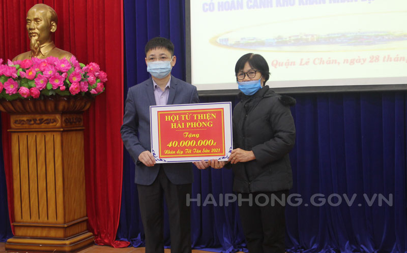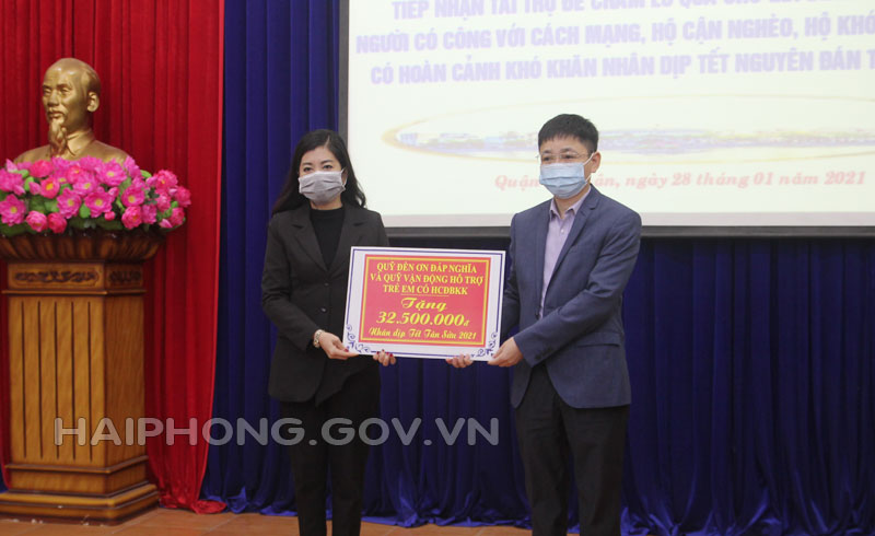 Sáng 29/1, quận Lê Chân tổ chức Hội nghị trao tặng và tiếp nhận tài trợ để chăm lo cho gia đình chính sách, người có công với cách mạng, hộ cận nghèo, trẻ em có hoàn cảnh đặc biệt khó khăn trên địa bàn quận nhân dịp Tết Nguyên đán Tân Sửu năm 2021.