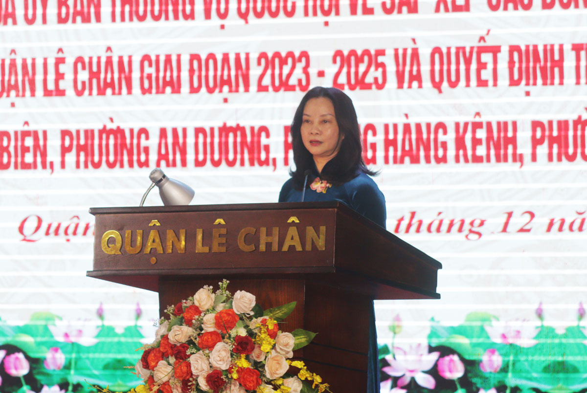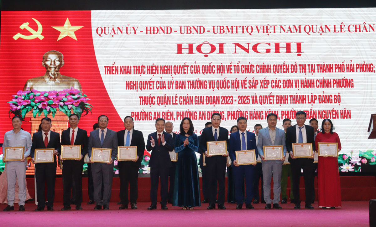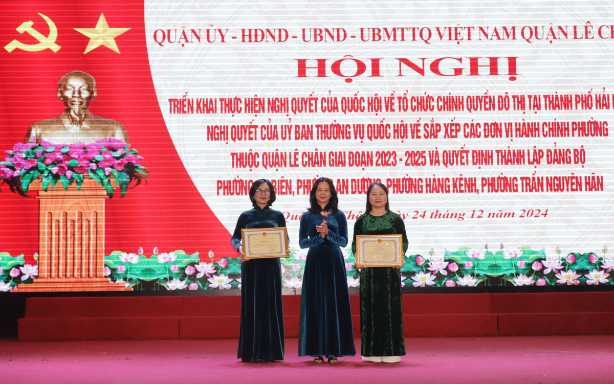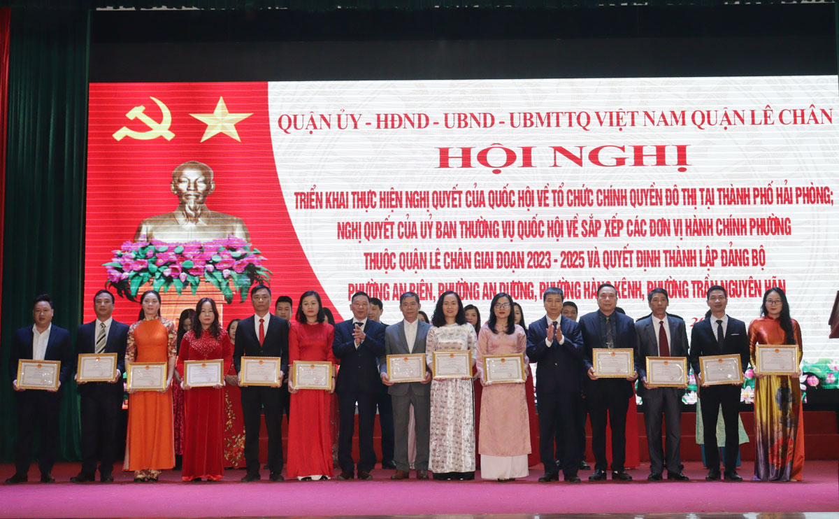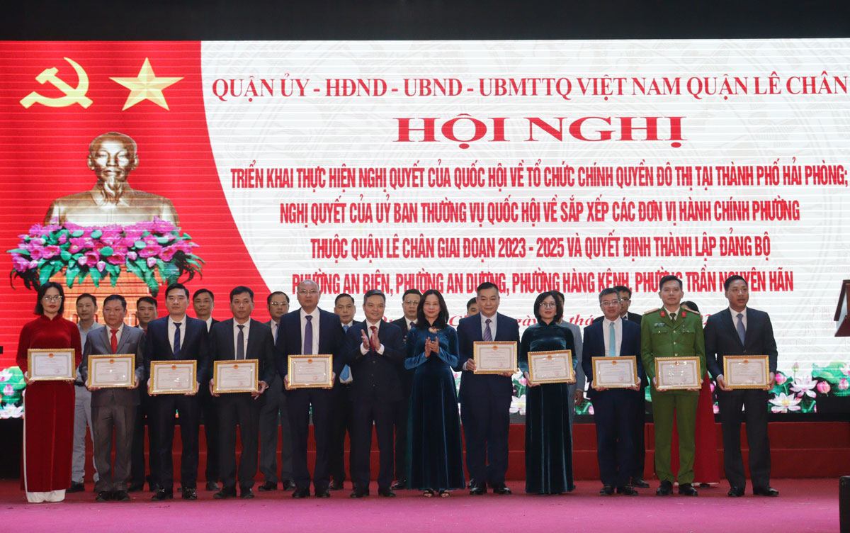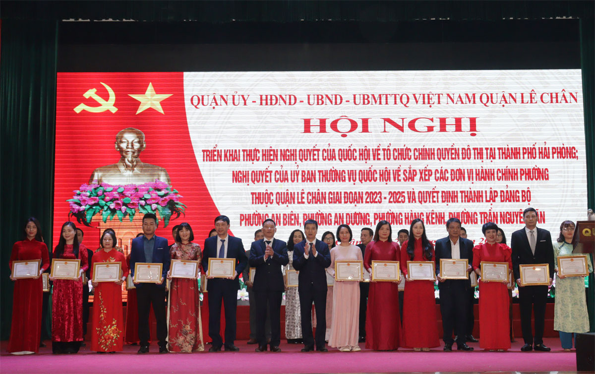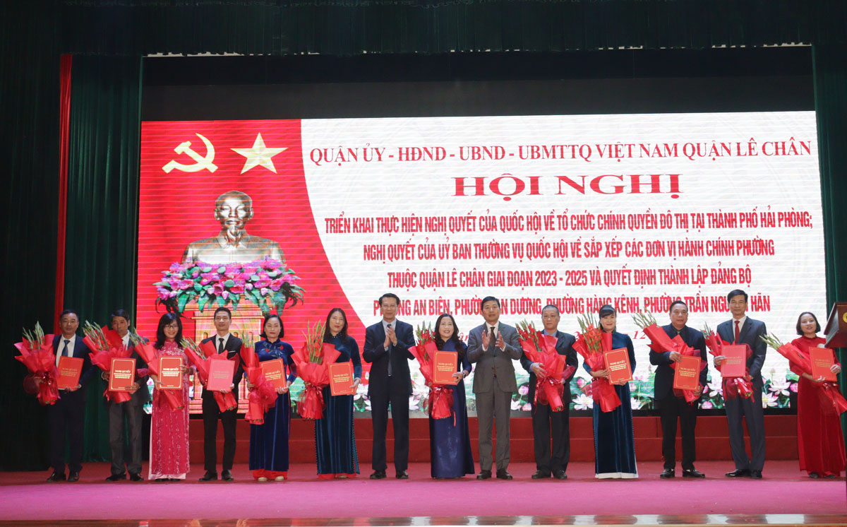 Chiều 24/12, quận Lê Chân tổ chức Hội nghị triển khai thực hiện Nghị quyết của Quốc hội về tổ chức chính quyền đô thị tại thành phố Hải Phòng và Nghị quyết của Ủy ban Thường vụ Quốc hội về sắp xếp đơn vị hành chính cấp huyện, cấp xã của thành phố Hải Phòng giai đoạn 2023-2025; đồng thời công bố Quyết định thành lập Đảng bộ các phường mới sau sáp nhập.