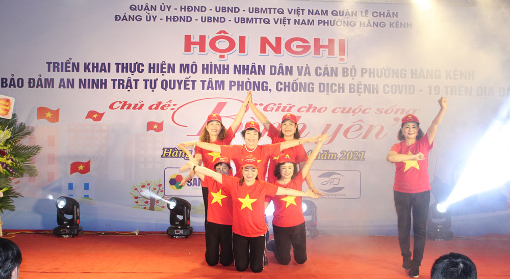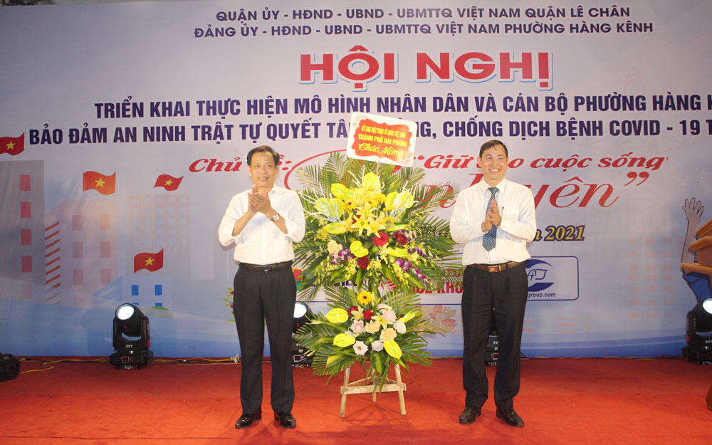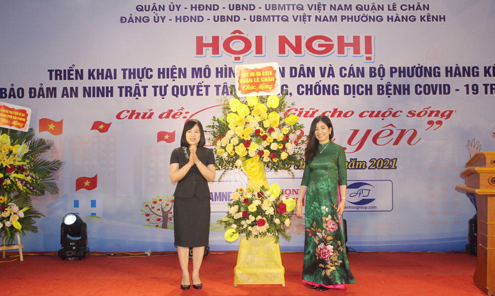 Tối 15/4, quận Lê Chân tổ chức Hội nghị triển khai thực hiện mô hình “Nhân dân và cán bộ tham gia bảo đảm an ninh trật tự, quyết tâm phòng, chống dịch bệnh COVID-19 trên địa bàn phường Hàng Kênh”. Đây là mô hình điểm được quận Lê Chân chỉ đạo tổ chức để nhân rộng trên địa bàn quận. Tới dự có đồng chí Đỗ Tràng Thành, Phó Chủ tịch Ủy ban MTTQ Việt Nam thành phố; lãnh đạo Công an thành phố và Ban Chỉ đạo 799 của 14 phường trên địa bàn quận.