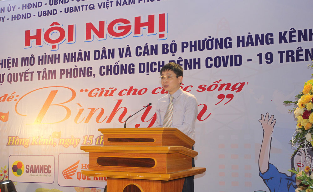 Phát biểu tại Hội nghị, đồng chí Phạm Việt Anh, Phó Chủ tịch UBND quận, Trưởng Ban Chỉ đạo 799 quận ghi nhận, đánh giá cao công tác tham mưu của Công an quận trong công tác xây dựng Phong trào toàn dân bảo vệ an ninh Tổ quốc trong thời gian qua và việc triển khai nhân rộng mô hình phòng, chống COVID-19 xuống cấp phường thực hiện. Đồng chí biểu dương phường Hàng Kênh đã tổ chức điểm mô hình “Nhân dân và cán bộ phường bảo đảm an ninh trật tự, quyết tâm phòng, chống dịch bệnh COVID-19 trên địa bàn”, bởi dịch bệnh COVID-19 là bệnh truyền nhiễm cấp tính với khả năng lây truyền cao từ người sang người; mặc dù hiện nay đã có vắc xin phòng ngừa, nhưng việc nâng cao ý thức phòng, chống dịch bệnh trong Nhân dân luôn cần sự tập trung cao trong công tác lãnh đạo, chỉ đạo và tổ chức thực hiện của các cấp ủy Đảng, chính quyền, các cấp, các ngành và toàn thể Nhân dân.