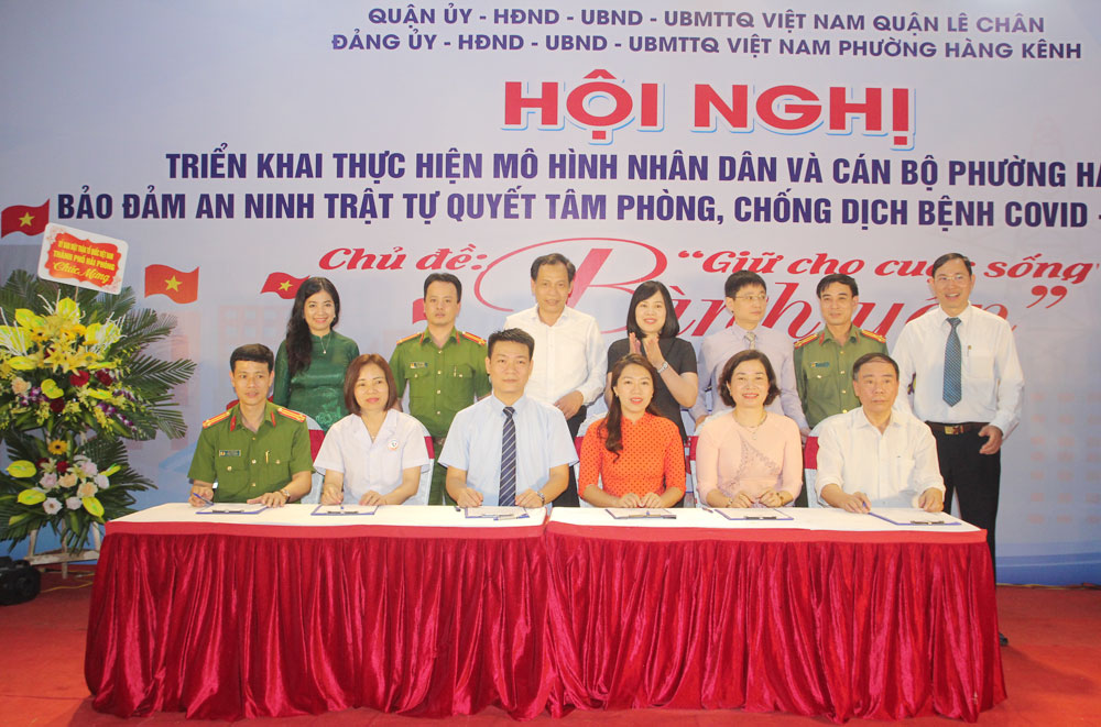 Tại Hội nghị, các đơn vị trên địa bàn phường Hàng Kênh đã ký giao ước thi đua thực hiện mô hình “Nhân dân và cán bộ phường bảo đảm an ninh trật tự, quyết tâm phòng, chống dịch bệnh COVID-19 trên địa bàn“.