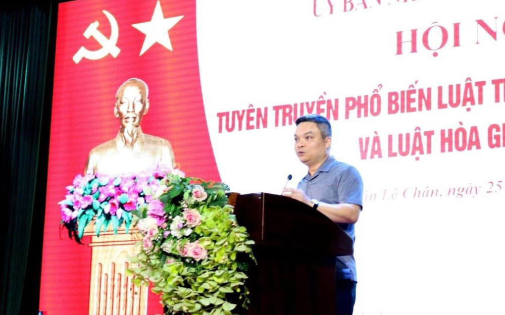 Sáng 25/7, UBND quận Lê Chân tổ chức Hội nghị tuyên truyền phổ biến Luật thực hiện dân chủ ở cơ sở và Luật hòa giải ở cơ sở. Đồng chí Nguyễn Hoàng Linh, Phó Bí thư Quận ủy, Chủ tịch UBND quận dự và chỉ đạo Hội nghị.