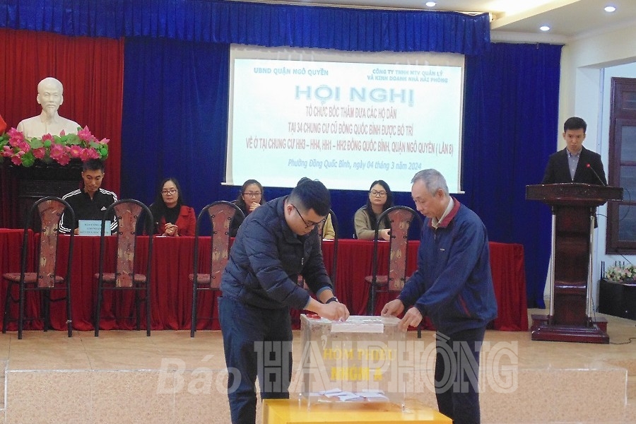 Chiều 4/3, UBND quận Ngô Quyền phối hợp Công ty TNHH MTV Quản lý và Kinh doanh nhà, Sở Xây dựng tổ chức bốc thăm lần 8 xác định vị trí căn hộ đối với các hộ dân tại các chung cư cũ tại phường Đồng Quốc Bình đủ điều kiện được bố trí về ở chung cư HH3-HH4 và HH1.