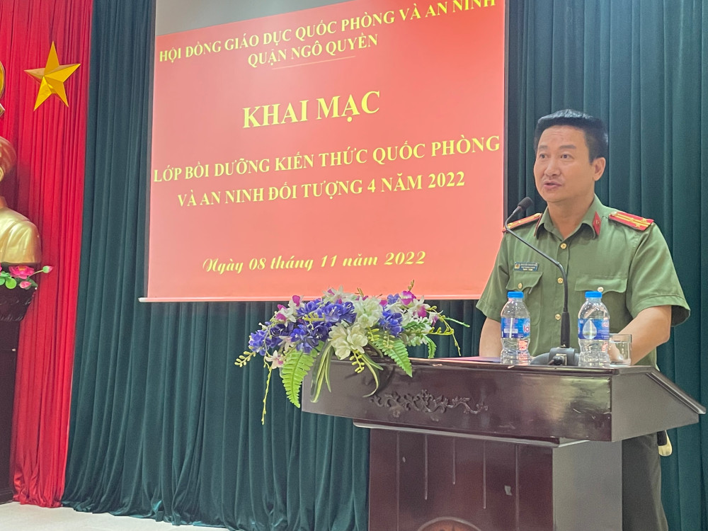 Sáng 8/11, Hội đồng giáo dục Quốc phòng và an ninh quận Ngô Quyền tổ chức bồi dưỡng kiến thức quốc phòng an ninh cho 124 học viên thuộc đối tượng 4 là cán bộ công chức các ban ngành đoàn thể quận và các phường trên địa bàn.