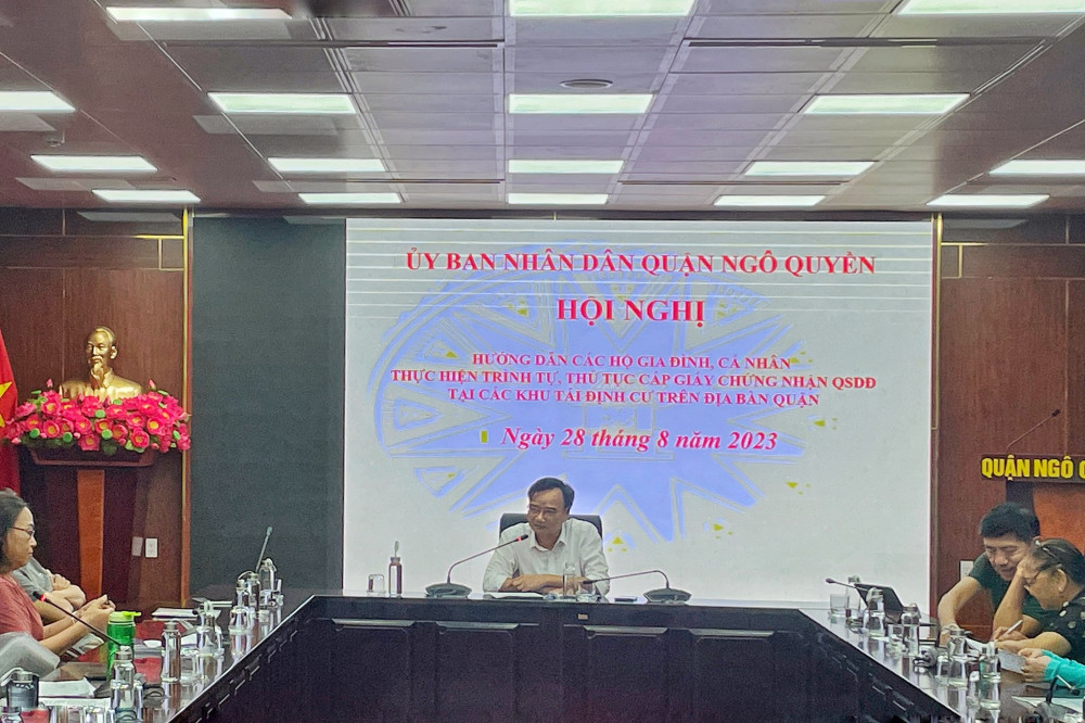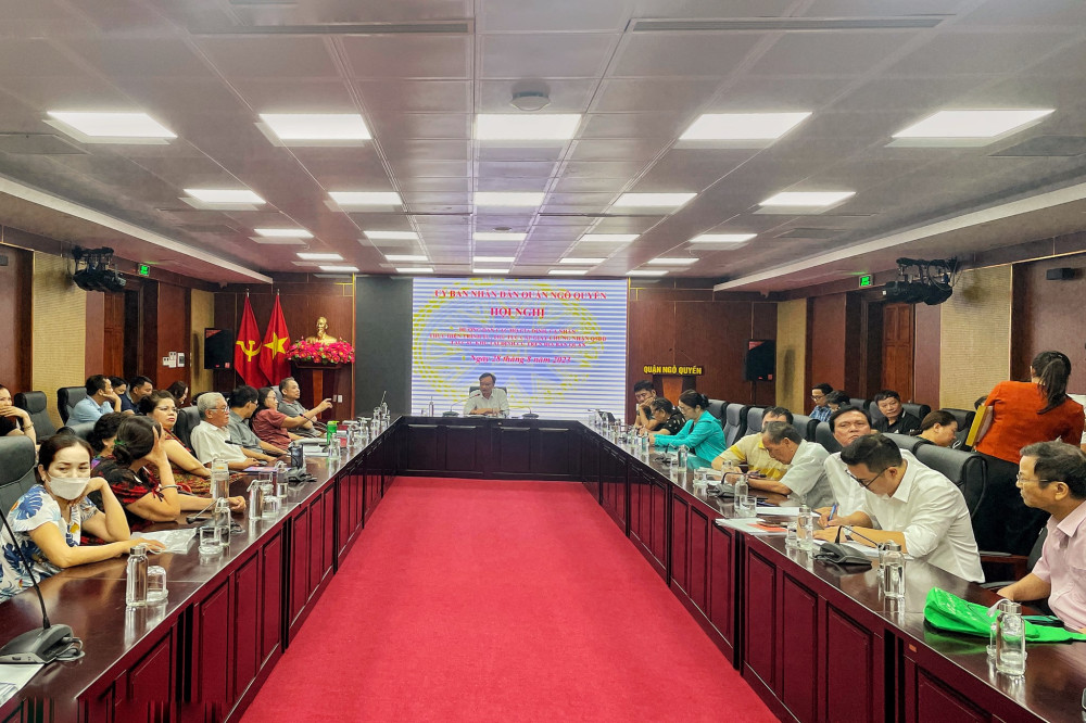 Chiều 28/8, UBND quận Ngô Quyền tổ chức họp về giao đất, cấp Giấy chứng nhận quyền sử dụng đất và thu tiền sử dụng đất tại Khu tái định cư Dự án tuyến đường Đông Khê 2; Phần điều chỉnh cục bộ khu vực gồm các lô BT03, HT03 và CX2 trong đồ án Quy hoạch chi tiết tỷ lệ 1/500 Dự án đầu tư xây dựng tuyến đường Đông Khê 2-Giai đoạn 1 tại phường Đằng Giang.