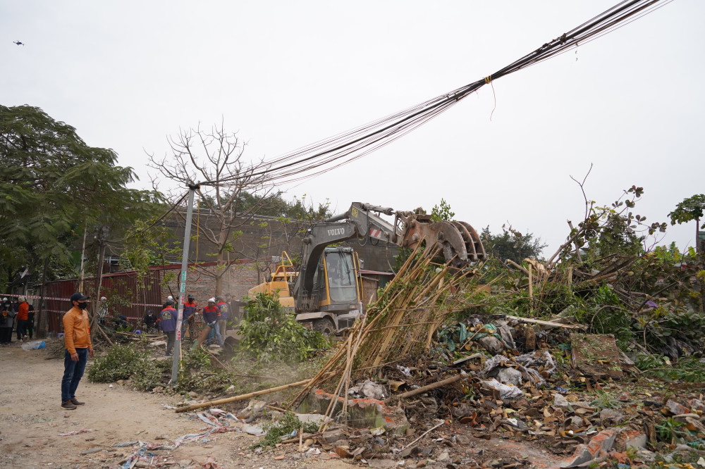 Thực hiện chủ trương tại Thông báo kết luận số 574 của Chủ tịch UBND thành phố về cưỡng chế buộc thực hiện biện pháp khắc phục hậu quả để bàn giao mặt bằng thực hiện Dự án đầu tư xây dựng công trình tuyến đường Đông Khê 2.
