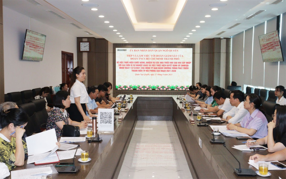 Chiều 17/8, Đoàn giám sát của Đoàn TNCS Hồ Chí Minh thành phố do đồng chí Vương Toàn Thu Thủy, Bí thư Thành đoàn làm Trưởng đoàn làm việc với UBND quận Ngô Quyền về việc thực hiện chức năng, nhiệm vụ của Nhà Thiếu nhi sau khi sáp nhập với các đơn vị sự nghiệp khác và việc thực hiện Quyết định số 3600/QĐ-UBND ngày 13/12/2021 của UBND thành phố ban hành Chương trình phát triển thanh niên thành phố Hải Phòng giai đoạn 2021-2030.