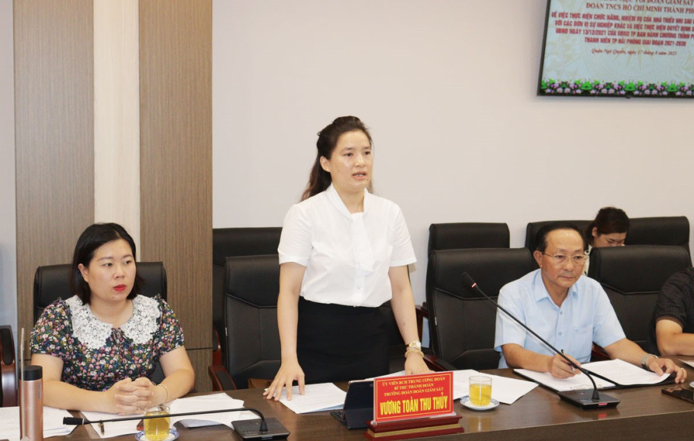 Qua nghe báo cáo và ý kiến của các thành viên Đoàn giám sát, đồng chí Vương Toàn Thu Thủy, Bí thư Thành đoàn đánh giá các chủ trương, chính sách đối với thanh niên và công tác thanh niên đều được UBND quận Ngô Quyền kịp thời chỉ đạo triển khai thực hiện theo yêu cầu của Trung ương và thành phố; quận đã tạo điều kiện thuận lợi nhất để Đoàn, Hội, Đội hoạt động có hiệu quả; tập trung chỉ đạo, triển khai những nhiệm vụ trọng tâm của chiến lược phát triển thanh niên; ưu tiên, lồng ghép các mục tiêu, chỉ tiêu phát triển thanh niên vào mục tiêu, chỉ tiêu phát triển của địa phương.
