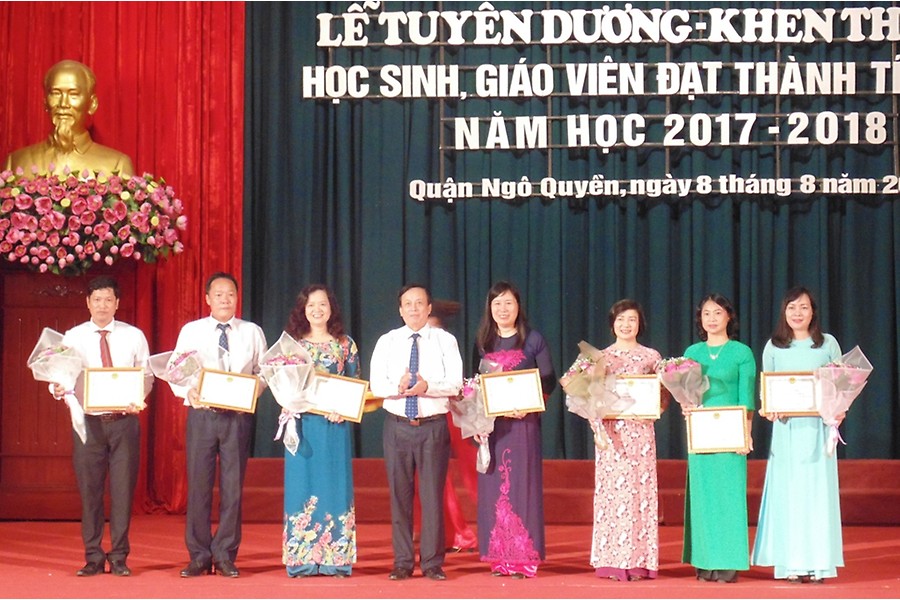 Năm học vừa qua, công tác đào tạo, bồi dưỡng học sinh giỏi của quận Ngô Quyền tiếp tục gặt hái nhiều thành công. Toàn quận có 608 giải học sinh giỏi các môn văn hóa và năng khiếu. Trong đó, 315 giải cấp thành phố; 293 giải cấp quốc gia, tăng 129 giải so với năm học 2016- 2017. Các trường có thành tích cao trong công tác đào tạo, bồi dưỡng học sinh giỏi là: THCS Chu Văn An, THCS Đà Nẵng, THCS Lạc Viên, tiểu học Lê Hồng Phong, tiểu học Nguyễn Trãi và Trường mầm non 8-3.