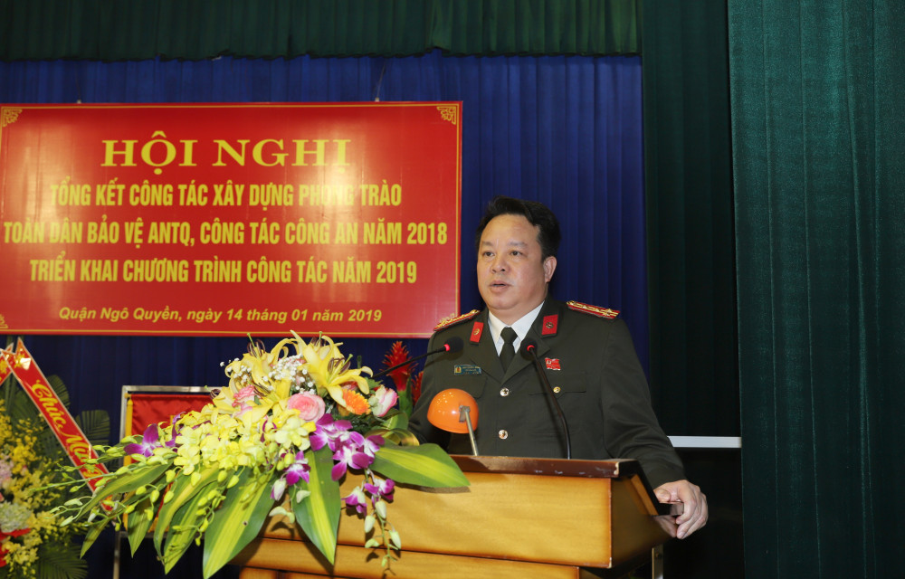 Sáng 14-1, quận Ngô Quyền tổ chức hội nghị tổng kết công tác xây dựng phong trào toàn dân bảo vệ ANTQ, công tác Công an năm 2018 và triển khai chương trình công tác năm 2019. Cùng dự có các đồng chí: Đào Khánh Hà, Bí thư Quận ủy; Bùi Thanh Sơn, Phó Bí thư, Chủ tịch UBND quận Ngô Quyền; Đại tá Nguyễn Quốc Hùng, Phó Bí thư Đảng ủy, Phó Giám đốc phụ trách CATP.