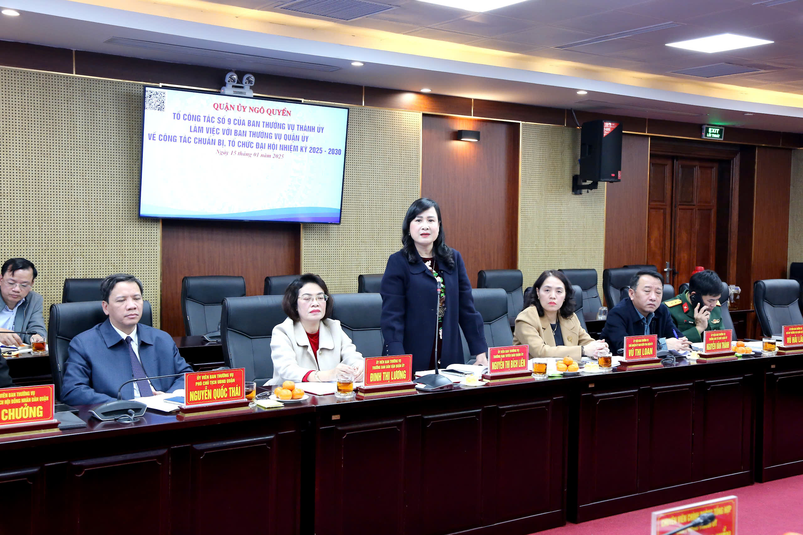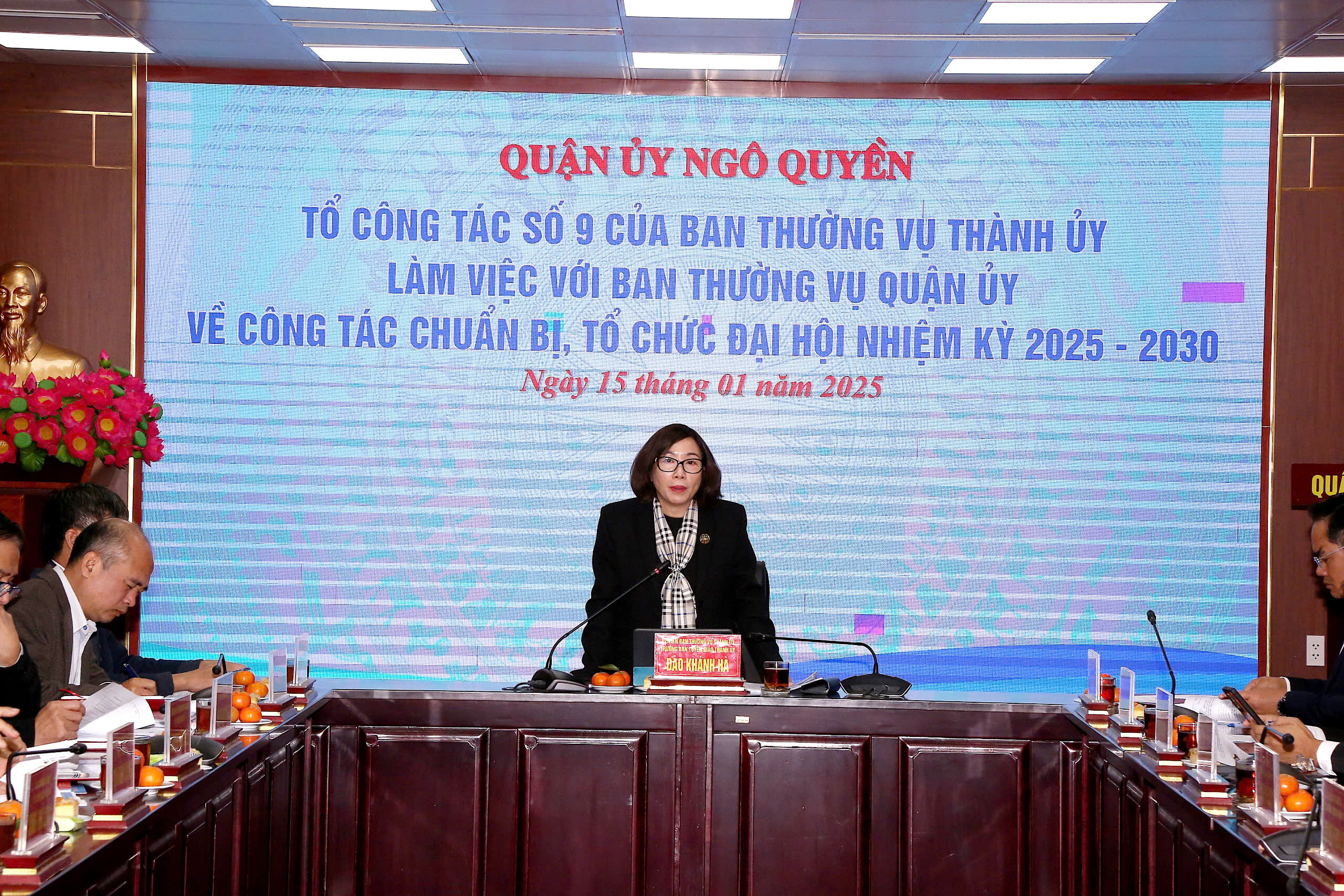 Sáng 15/1, Tổ công tác số 9 của Ban Thường vụ Thành ủy do đồng chí Đào Khánh Hà, Uỷ viên Ban Thường vụ Thành ủy, Trưởng Ban Tuyên giáo Thành ủy làm Tổ trưởng làm việc với Ban Thường vụ Quận ủy Ngô Quyền về công tác chuẩn bị, tổ chức Đại hội nhiệm kỳ 2025-2030.