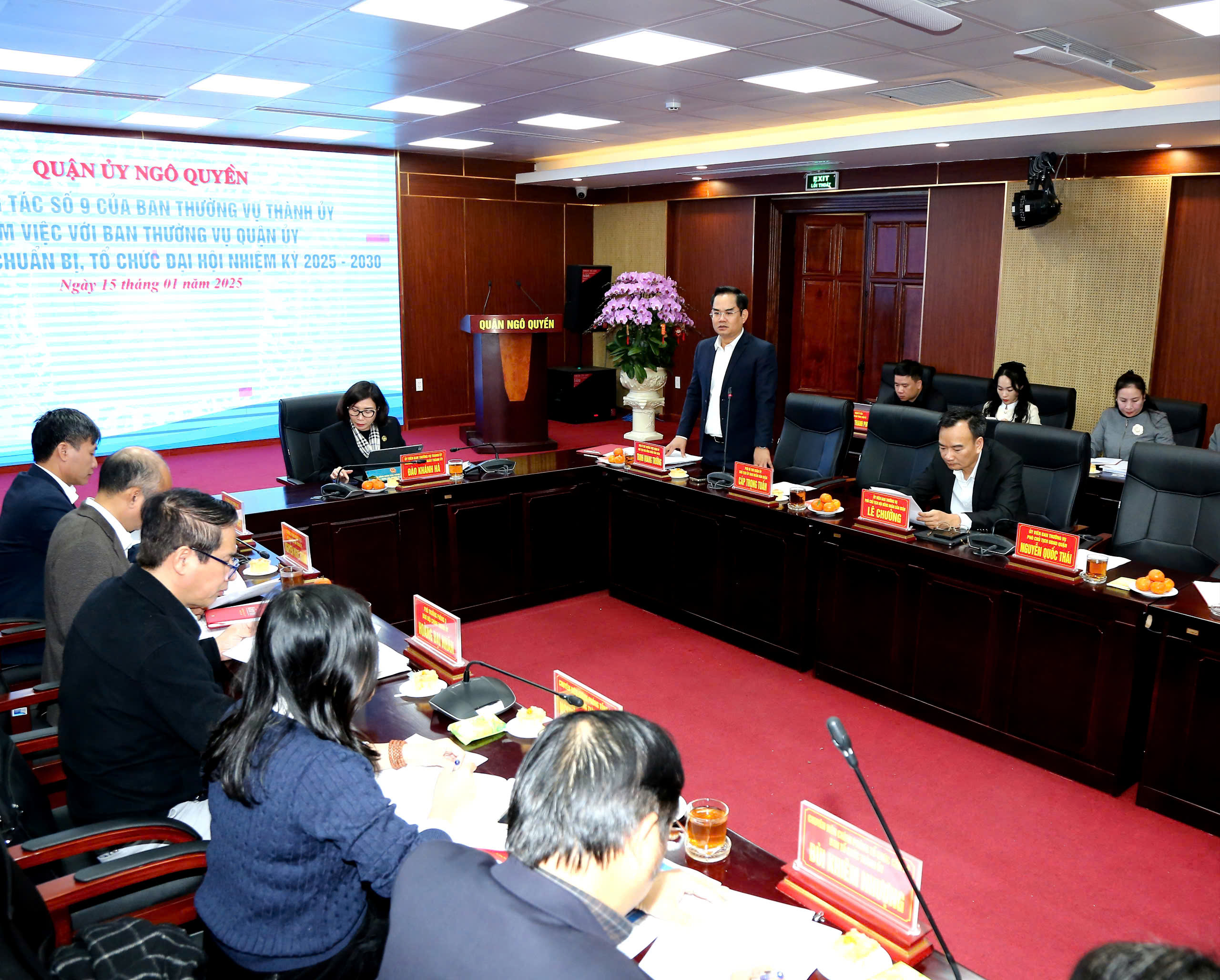 Để chuẩn bị, tổ chức Đại hội nhiệm kỳ 2025-2030, Quận ủy Ngô Quyền kịp thời quán triệt, cụ thể hóa các quy định, hướng dẫn của Trung ương, Thành ủy về tổ chức Đại hội đảng các cấp tới các tổ chức cơ sở đảng, cán bộ, đảng viên và nhân dân. Quận chủ động xây dựng, triển khai các kế hoạch tổng thể, chi tiết, phân công trách nhiệm cho các cơ quan, đơn vị, cá nhân gắn với tăng cường kiểm tra, đôn đốc thực hiện.