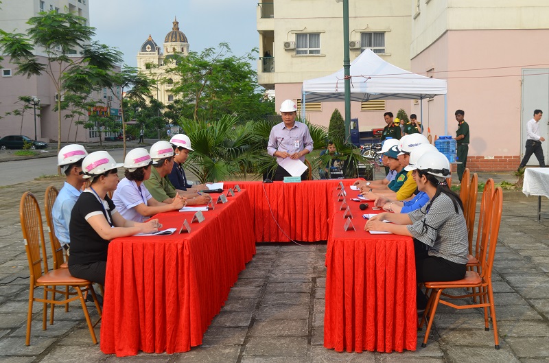 Tại cuộc diễn tập, Ban chỉ huy Phòng chống thiên tai và tìm kiếm cứu nạn quận khẩn trương vận động di dời người dân ra khỏi nơi nguy hiểm, đồng thời tăng cường lực lượng ứng cứu, sử dụng trang thiết bị hiện đại giải cứu người mắc kẹt tại các hộ ở tầng cao. Bên cạnh đó, huy động lực lượng giải quyết nhanh, hiệu quả đám cháy.