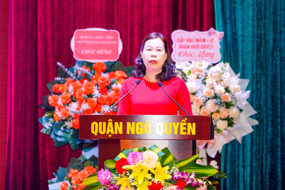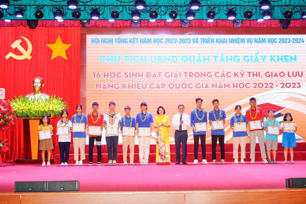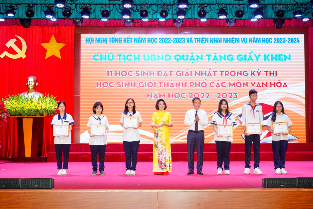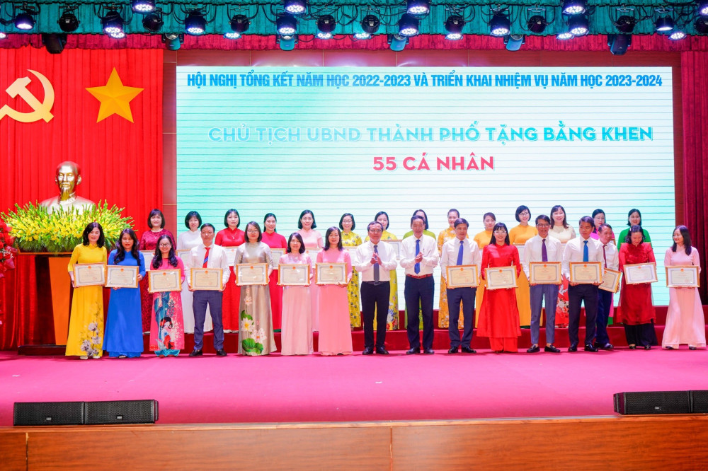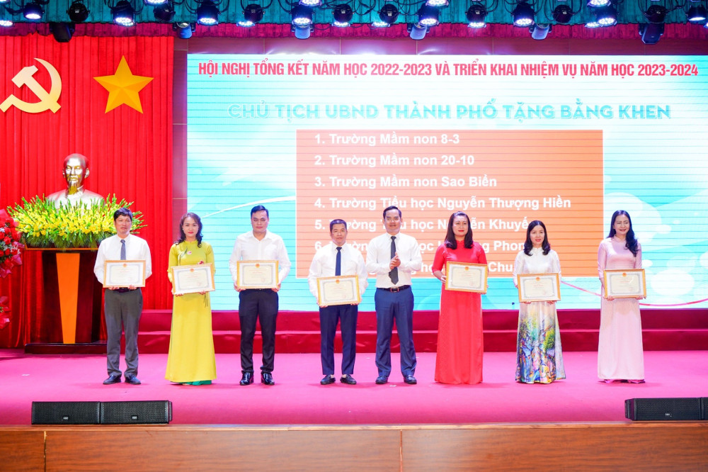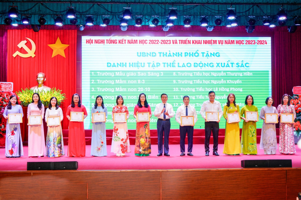 Nhân dịp này, UBND thành phố tặng Cờ thi đua cho 02 tập thể thuộc ngành Giáo dục quận về thành tích hoàn thành xuất sắc, toàn diện nhiệm vụ công tác năm học 2022-2023 gồm: Trường tiểu học Chu Văn An và Trường THCS Chu Văn An; biểu dương 13 tập thể đạt danh hiệu “Tập thể Lao động xuất sắc”; Chủ tịch UBND thành phố tặng Bằng khen 7 tập thể và 55 cá nhân; Chủ tịch UBND quận Ngô Quyền tặng Giấy khen 69 học sinh và 92 giáo viên có thành tích xuất sắc, đạt giải cao trong các kỳ thi và công tác bồi dưỡng học sinh giỏi các cấp, năm học 2022-2023.