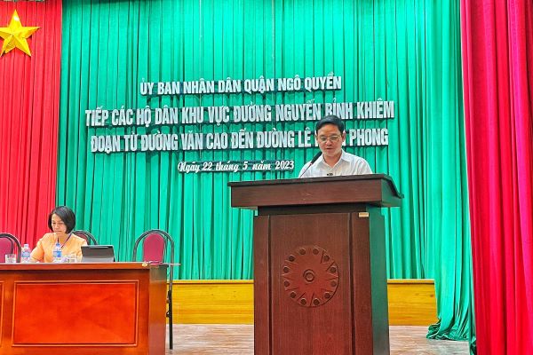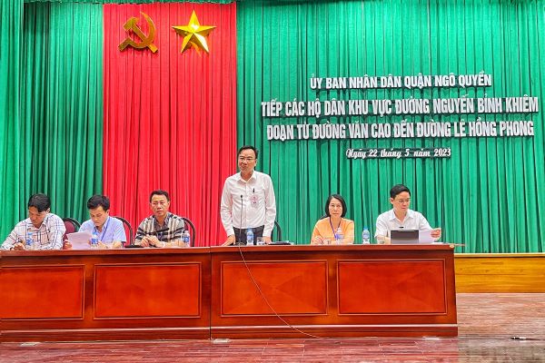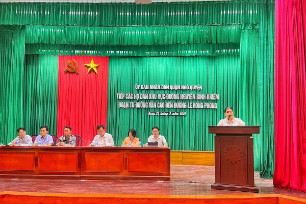 Chiều 22/5, UBND quận Ngô Quyền tổ chức đối thoại với các hộ dân khu vực đường Nguyễn Bỉnh Khiêm, đoạn từ đường Văn Cao đến đường Lê Hồng Phong. Đồng chí Lê Chưởng, Phó chủ tịch Thường trực UBND quận chủ trì. Cùng dự có các phòng, ban chức năng quận Ngô Quyền và đại diện các hộ dân.