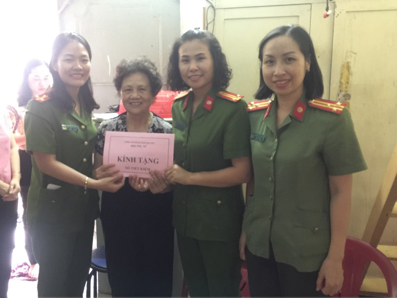 Thượng tá Nguyễn Thị Lan Hương – Chủ tịch HPN CATP chứng kiến Ban chấp hành Hội LHPN CAQ Ngô Quyền trao sổ tiết kiệm cho bà Cao Hải Phượng