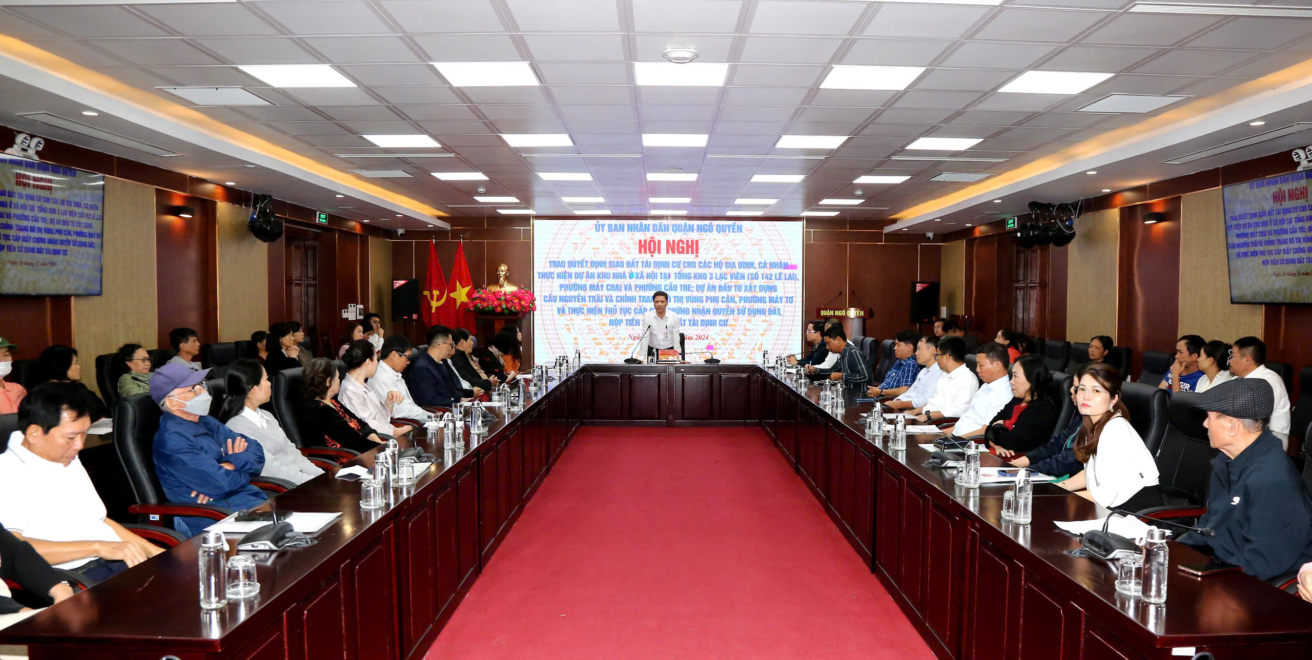 Để triển khai giải phóng mặt bằng các Dự án nêu trên, các hộ dân có đất thu hồi đã đồng thuận nhận tiền bồi thường, hỗ trợ và phương án tái định cư, sớm bàn giao mặt bằng để dự án triển khai thi công thuận lợi. Trước sự ủng hộ của người dân, quận Ngô Quyền tạo điều kiện thuận lợi nhất để các hộ dân có đất thu hồi thực hiện các trình tự, thủ tục cấp giấy chứng nhận sử dụng đất tại khu tái định cư. Đợt này, UBND quận trao Quyết định giao đất tái định cư tại Khu tái định cư ngõ 226 Lê Lai (phường Máy Chai) và Khu tái định cư thuộc Dự án Khu nhà ở xã hội tại Tổng kho 3 Lạc Viên cho 57 hộ hoàn thiện hồ sơ theo quy định.