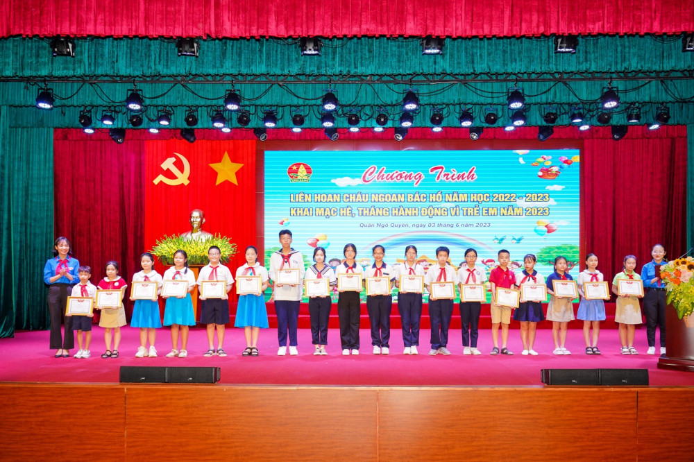 Sáng 3/6, Ban Chỉ đạo hè, Quận Đoàn-Hội đồng đội Quận Ngô Quyền tổ chức Liên hoan cháu ngoan Bác Hồ, biểu dương gương thiếu nhi vượt khó học giỏi năm học 2022-2023; Khai mạc hoạt động Hè; và Tháng hành động Vì trẻ em năm 2023.