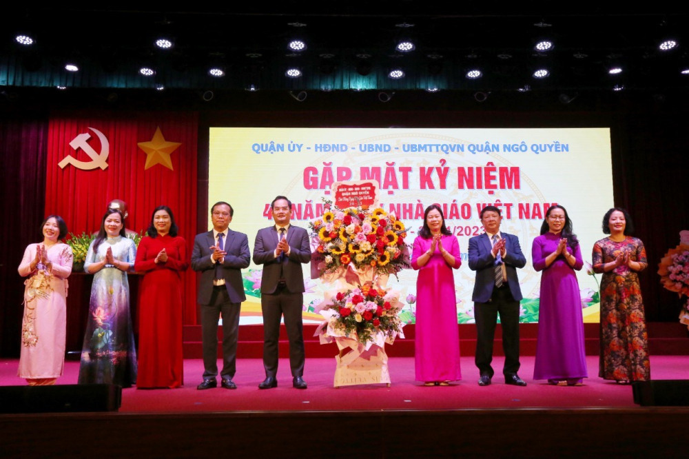 Nhân dịp Kỷ niệm 41 năm Ngày Nhà giáo Việt Nam (20/11/1982-20/11/2023). Chiều 16/11, quận Ngô Quyền long trọng tổ chức Chương trình Gặp mặt kỷ niệm, tri ân đối với các thầy cô giáo, cán bộ, viên chức, nhân viên công tác trong ngành Giáo dục và Đào tạo quận và Biểu dương phong trào thi đua “Dạy tốt, Học tốt”.