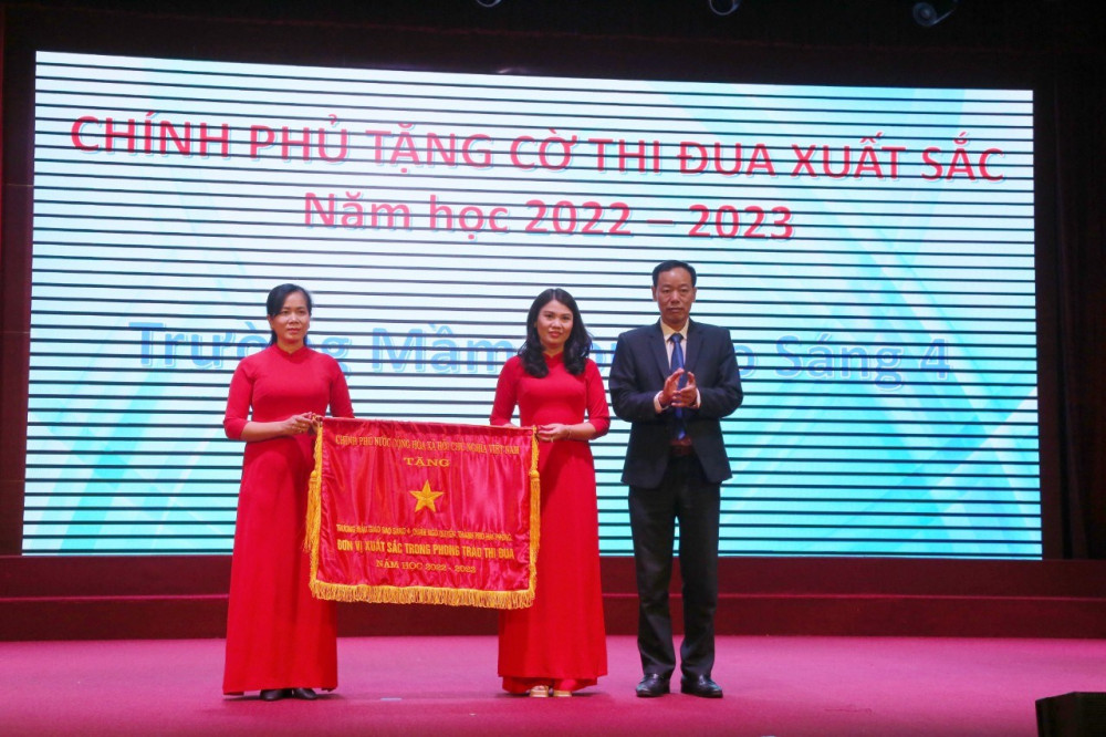 Nhân dịp này, Chính phủ tặng Cờ Thi đua xuất sắc cho 01 tập thể là Trường Mầm non Sao Sáng 4; tặng Bằng khen của Thủ tướng Chính phủ cho 03 cá nhân; Bộ Giáo dục và Đào tạo tặng Bằng khen cho 03 tập thể và 15 cá nhân; UBND thành phố tặng Danh hiệu Chiến sỹ thi đua thành phố cho 02 cá nhân.
