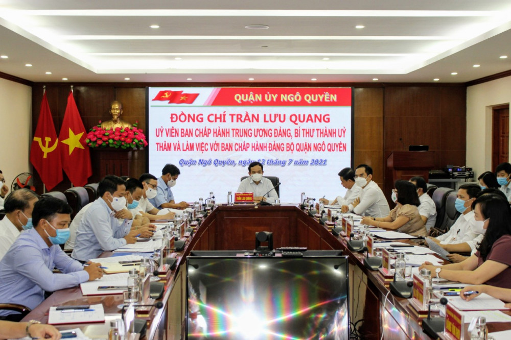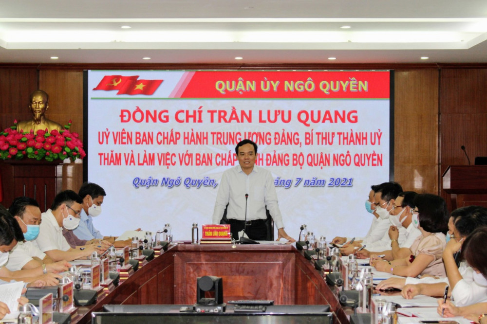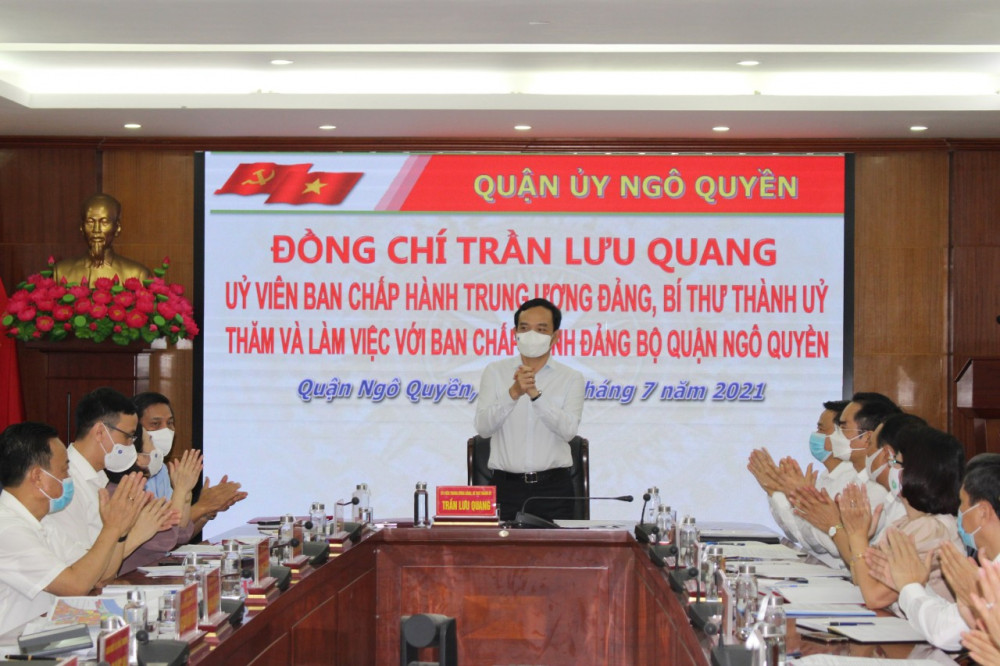 Sau khi nghe các ý kiến tại cuộc làm việc, Bí Thư Thành ủy Trần Lưu Quang ghi nhận và đánh giá cao những kết quả mà Đảng bộ, chính quyền, quân và dân quận Ngô Quyền đã đạt được trong nhiệm kỳ qua. Kết quả đó đã góp phần quan trọng vào sự phát triển chung của thành phố. Bí thư Thành ủy bày tỏ niềm vui khi đến thăm và làm việc tại quận Ngô Quyền, đây là địa phương có truyền thống lịch sử lâu đời, góp phần tạo dựng nên hình ảnh đô thị của thành phố, quận có vai trò là trung tâm kinh tế, văn hóa xã hội, là đầu mối giao thông quan trọng, tập trung nhiều trung tâm thương mại, dịch vụ tổng hợp của thành phố.