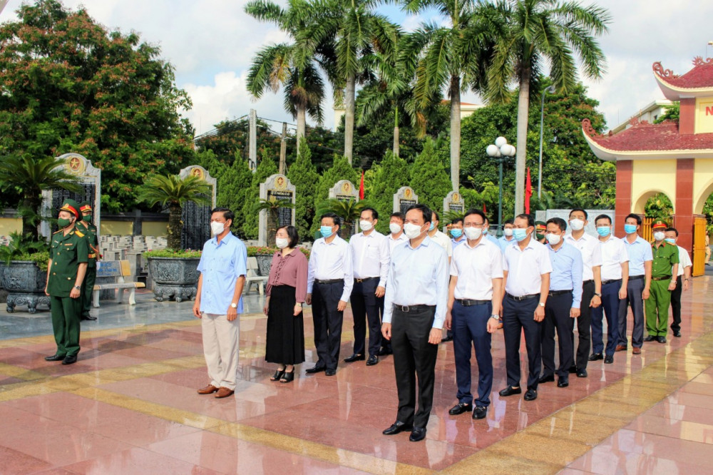 Trước đó, Bí thư Thành ủy Trần Lưu Quang và Đoàn công tác đã đến dâng hương tại Nghĩa trang Liệt sỹ quận Ngô Quyền; kiểm tra thực địa tại tuyến đường T100 và tuyến đường T40 thuộc Dự án Khu đô thị mới ngã 5-Sân bay Cát Bi.