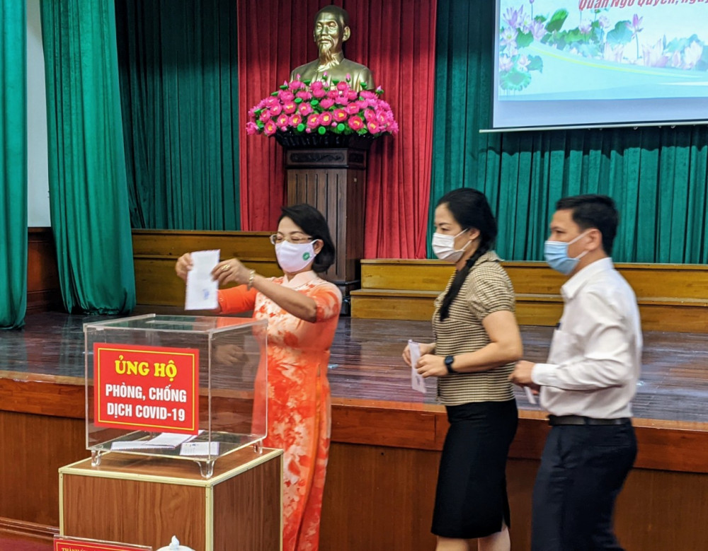 Tại buổi lễ, bà Đinh Thị Lương, Ủy viên Ban Thường vụ Quận ủy, Trưởng Ban Dân vận, Chủ tịch Ủy ban MTTQ Việt Nam quận Ngô Quyền nhấn mạnh: Hưởng ứng Lời kêu gọi của Ủy ban MTTQ Việt Nam thành phố về phát động đợt cao điểm vận động quyên góp ủng hộ Quỹ phòng, chống dịch bệnh COVID-19, Ban Thường trực Ủy ban MTTQ Việt Nam quận Ngô Quyền có Thư kêu gọi toàn thể nhân dân, cán bộ, chiến sĩ và các cơ quan, tổ chức, doanh nghiệp, nhà hảo tâm trên địa bàn phát huy truyền thống đoàn kết, tương thân tương ái của dân tộc, bằng tình cảm và trách nhiệm, cùng chung sức, đồng lòng, tích cực tham gia ủng hộ Quỹ phòng, chống dịch bệnh COVID-19 của thành phố để cùng chiến thắng dịch bệnh.
