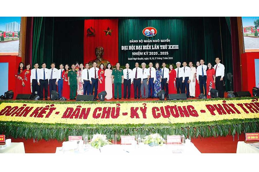 Hôm nay Đảng bộ Quận Ngô Quyền long trọng tổ chức Đại hội đại biểu Đảng bộ Quận lần thứ 23, nhiệm kỳ 2020÷2025. Thay mặt Thành ủy, tôi nhiệt liệt chào mừng các đồng chí đại biểu, khách quý và 192 đại biểu ưu tú đại diện cho gần 12.000 đảng viên trong toàn Đảng bộ đã về dự Đại hội; Trân trọng gửi tới các đồng chí lời chúc sức khỏe, chúc Đại hội thành công tốt đẹp!