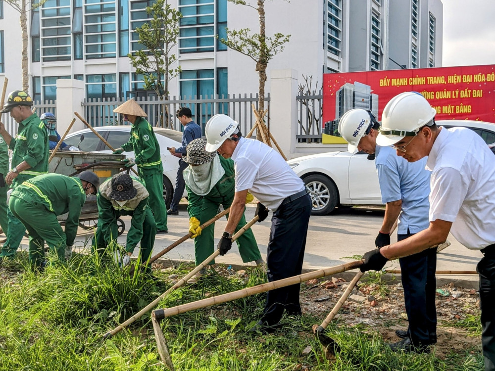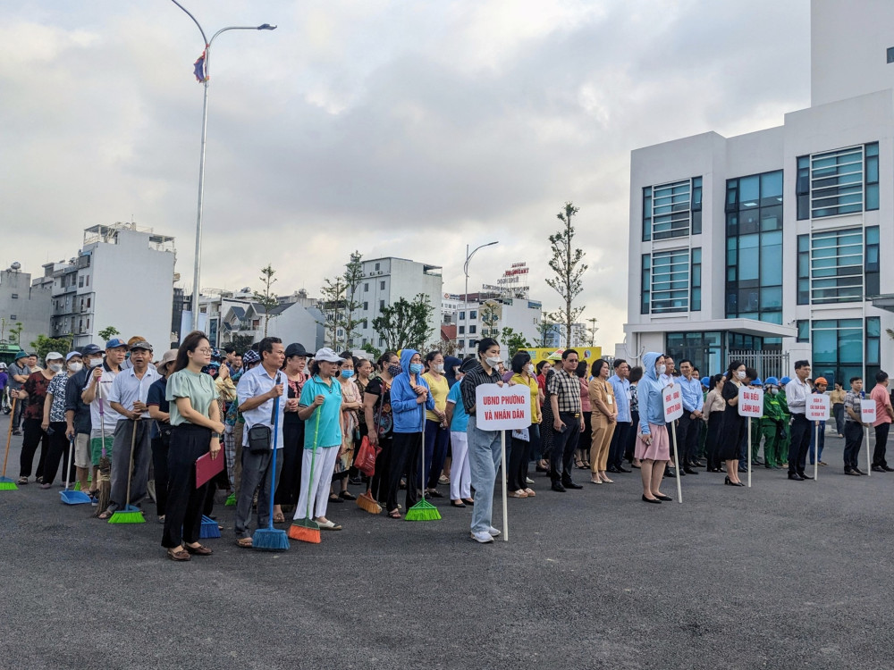 Ngay sau Lễ ra quân, các lực lượng của quận đồng loạt ra quận dọn dẹp vệ sinh khu vực xung quanh Trung tâm Chính trị-Hành chính quận.